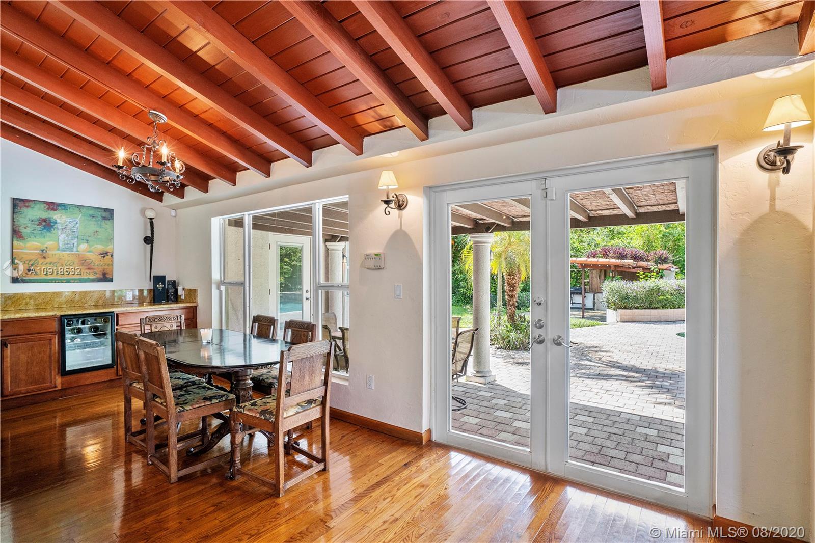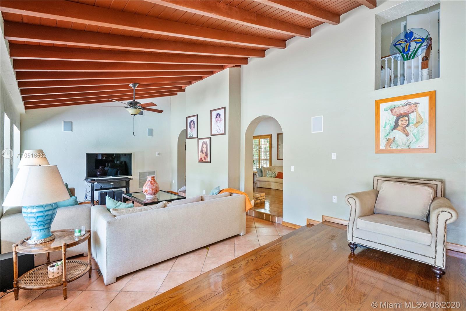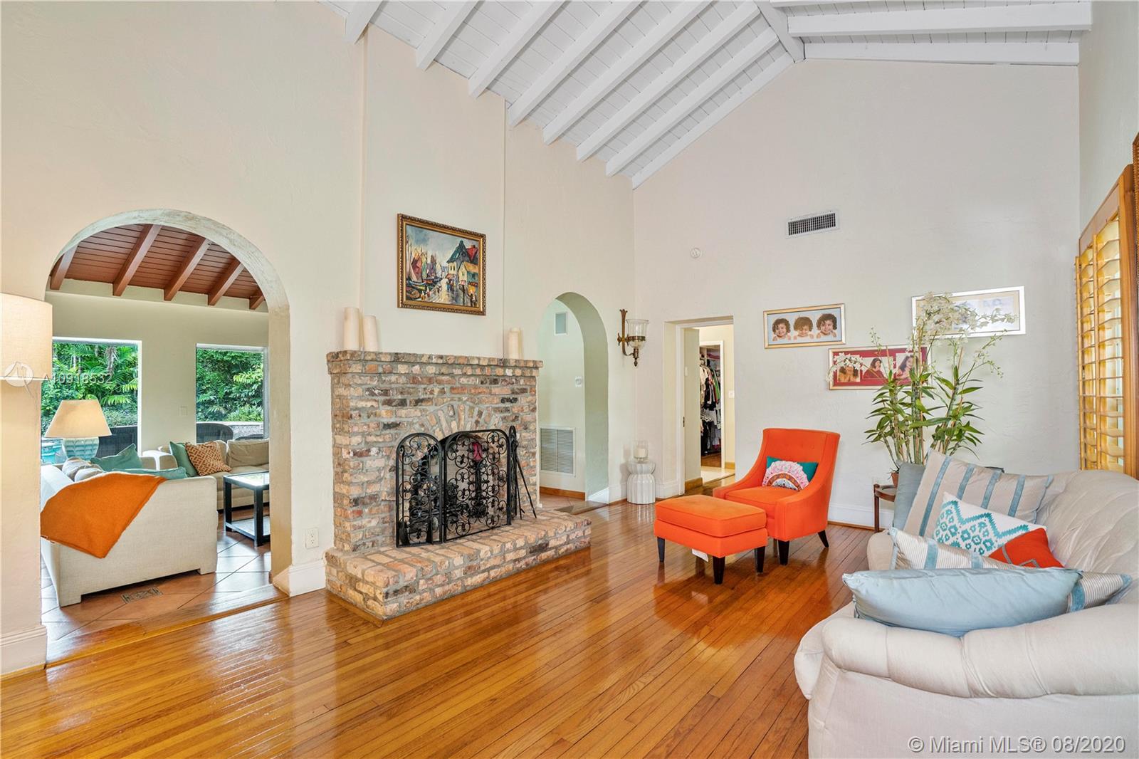 Beautiful Spanish Mediterranean home in desirable quiet Miami Shores street. Built in 1925, this 2 story home has tons of charming detail 4 bedrooms, 3 full baths on a quiet street in Miami Shores. 3,327 sq. ft. living space. Large fenced lot w/pool & covered outdoor kitchen. Entry foyer has a beautiful staircase & access to the big living room w/soaring wood beamed ceilings & wood burning fireplace. Huge dining room. Eat-in kitchen with stainless steel appliances, granite counter tops & views of the pool. The family room is open to the kitchen & overlooks backyard. Big inside laundry/utility room. One of the first story bathrooms doubles as the bath for the pool. Wood and tile floors, two zones of central a/c, impact windows and more. Great location, move in ready. Matter port attached