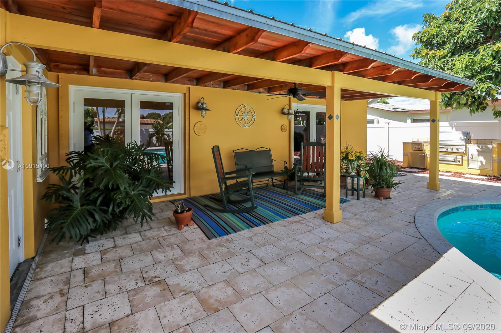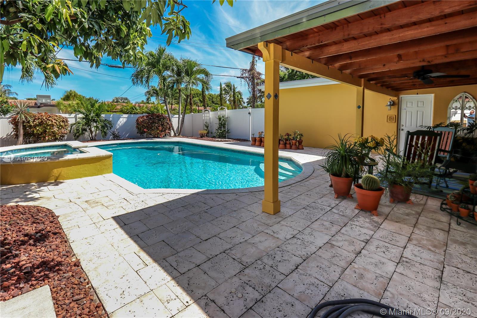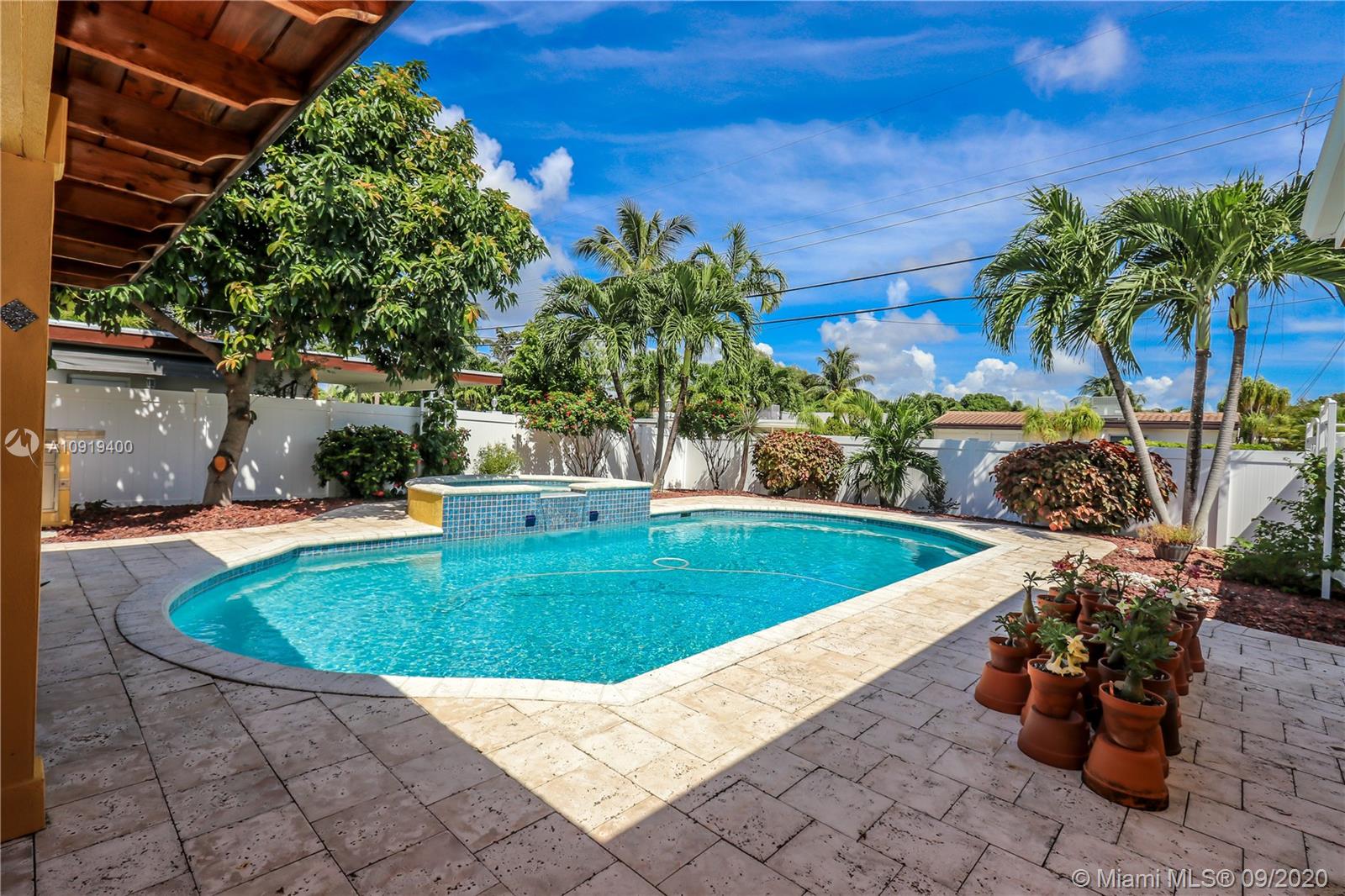 Gorgeous 3 bed/2.5 bath pool home with beautiful curb appeal and tropical landscaping nestled in Historic Hollywood Lakes Community. The master bedroom has 2 walk-in closets, sitting area with French doors facing pool and covered patio. Combination of astonishing Brazilian cherry wood floor and tile floor resonates throughout the home. Kitchen features elegant quartz countertops, Miele Induction Cooktop, Miele Double oven, custom cabinetry, formal dining and breakfast area that also faces the pool. Skylights throughout home provide lots of natural bright light. Laundry room with sink including Samsung washer & dryer. Outside kitchen with, grill and warming oven. Heated saltwater pool/spa, outside shower, newer fence large backyard great for entertaining. No HOA.