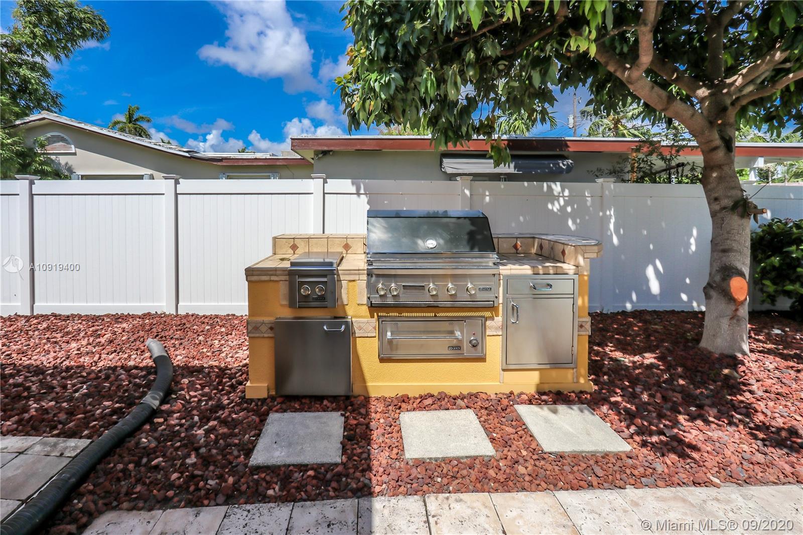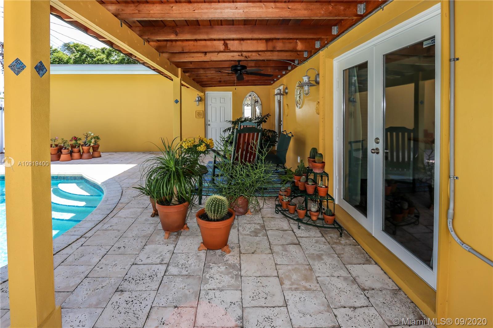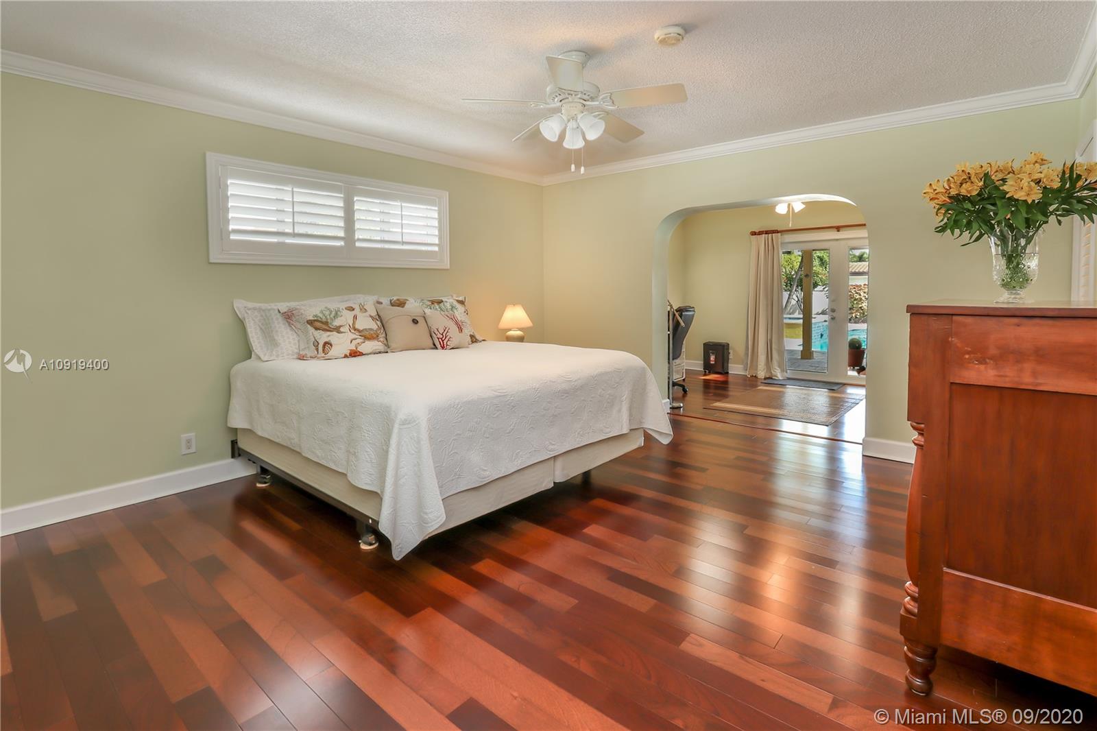 Gorgeous 3 bed/2.5 bath pool home with beautiful curb appeal and tropical landscaping nestled in Historic Hollywood Lakes Community. The master bedroom has 2 walk-in closets, sitting area with French doors facing pool and covered patio. Combination of astonishing Brazilian cherry wood floor and tile floor resonates throughout the home. Kitchen features elegant quartz countertops, Miele Induction Cooktop, Miele Double oven, custom cabinetry, formal dining and breakfast area that also faces the pool. Skylights throughout home provide lots of natural bright light. Laundry room with sink including Samsung washer & dryer. Outside kitchen with, grill and warming oven. Heated saltwater pool/spa, outside shower, newer fence large backyard great for entertaining. No HOA.