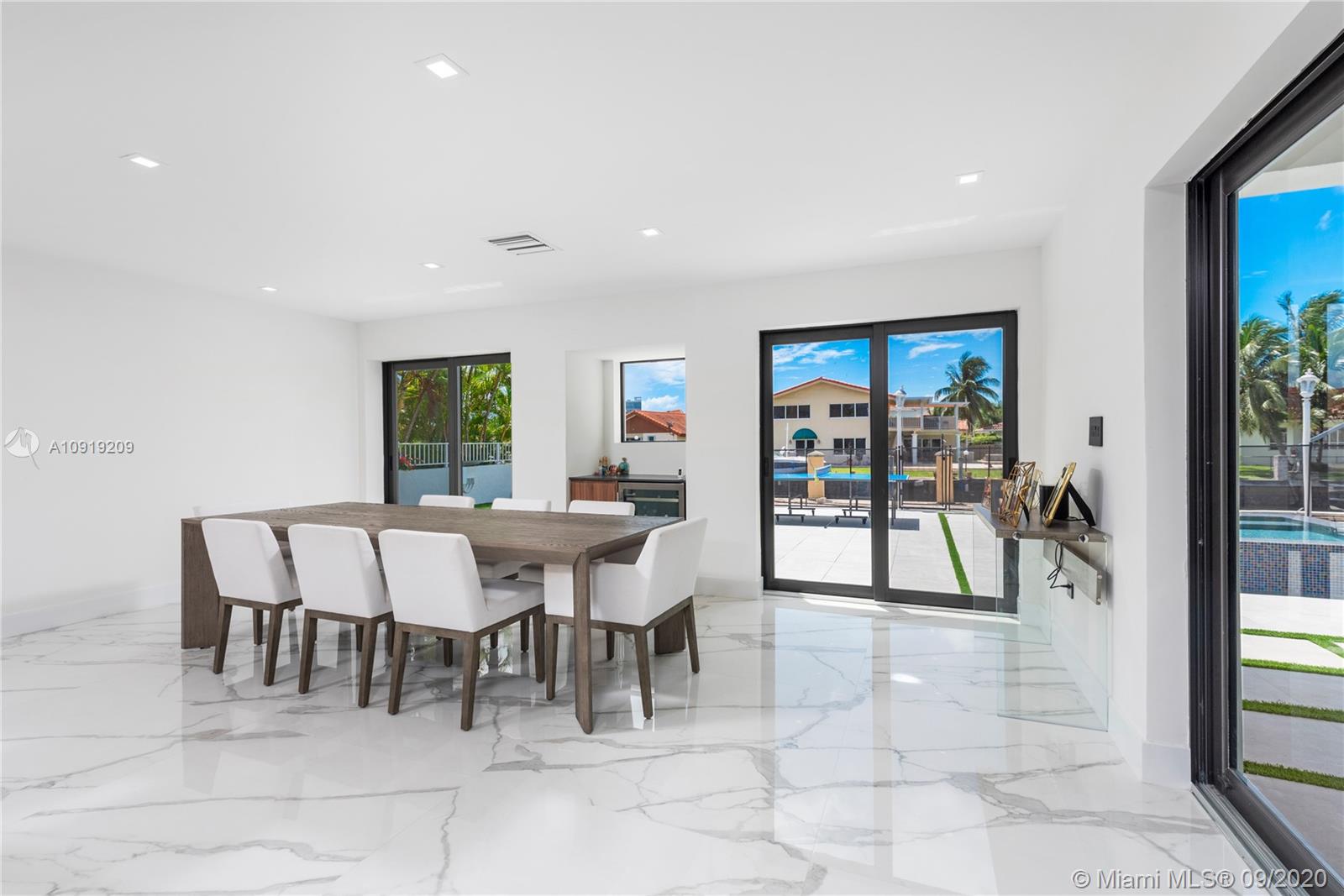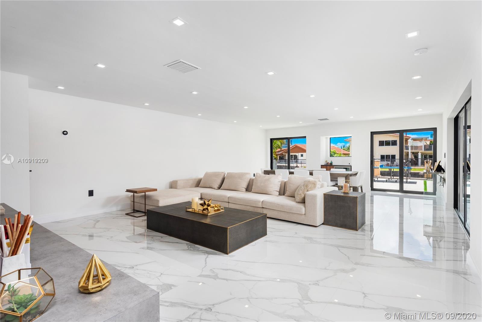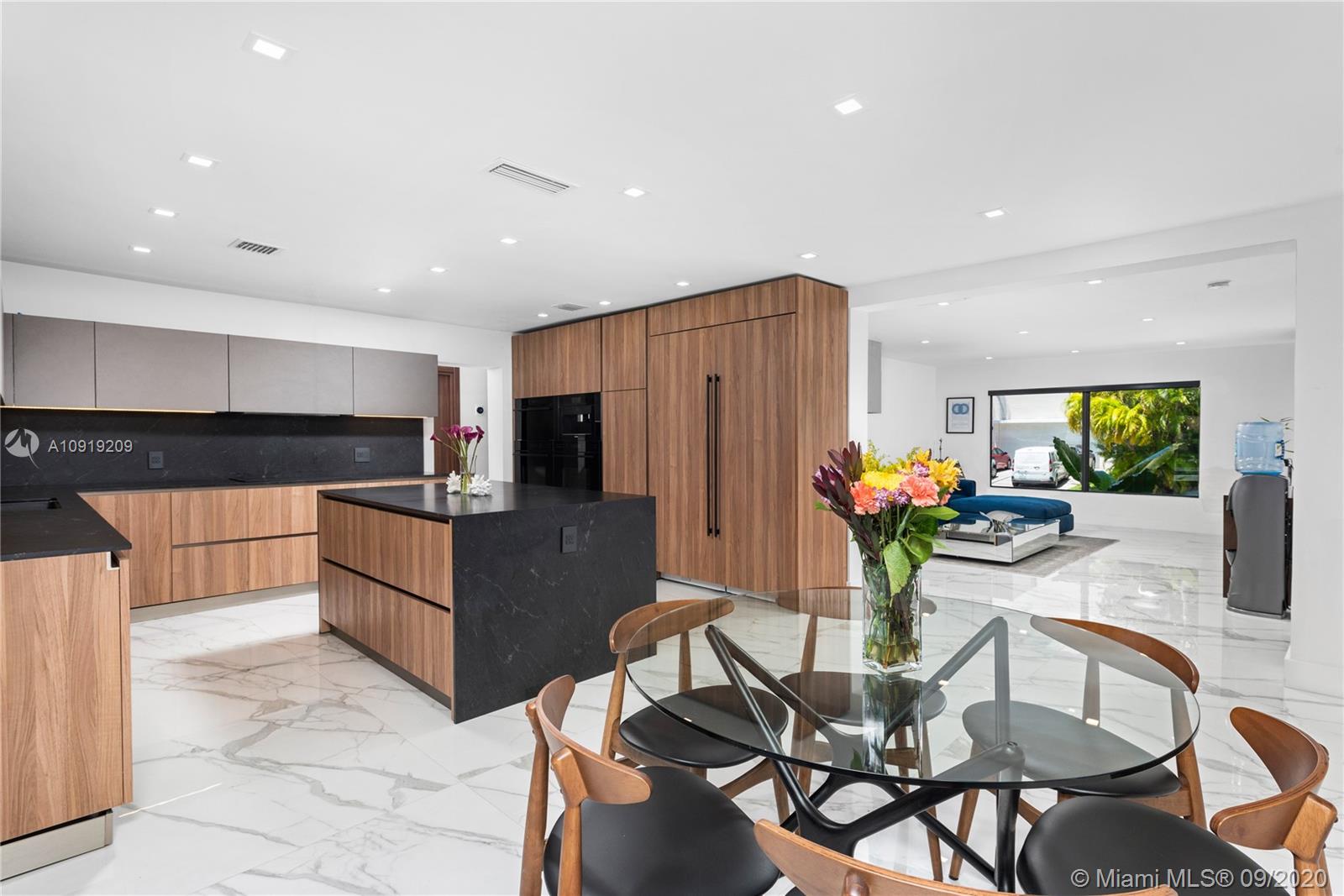 This fully remodeled, 5,650 sq ft home is situated on an oversized lot with one of the best views and more than 90 ft of water prime frontage in the heart of Eastern Shores - boasting 6 bedrooms, 7 bathrooms, a gym, office, movie theater, staff room and 2 car garage. The home has been renovated from the studs and done to the nines with no expense spared, this move-in ready home is filled with brand new AC units, new concrete tile roof, PGT hurricane impact windows, brand new 35 x 15 pool with brand new jacuzzi and energy efficient equipment. Interior finishes such as custom 48 x 48 Italian floors, a true chef’s imported kitchen equipped with subzero/wolf/Miele appliances and Dekton countertops plus custom features throughout the property make it the perfect turnkey home for a quick move-in