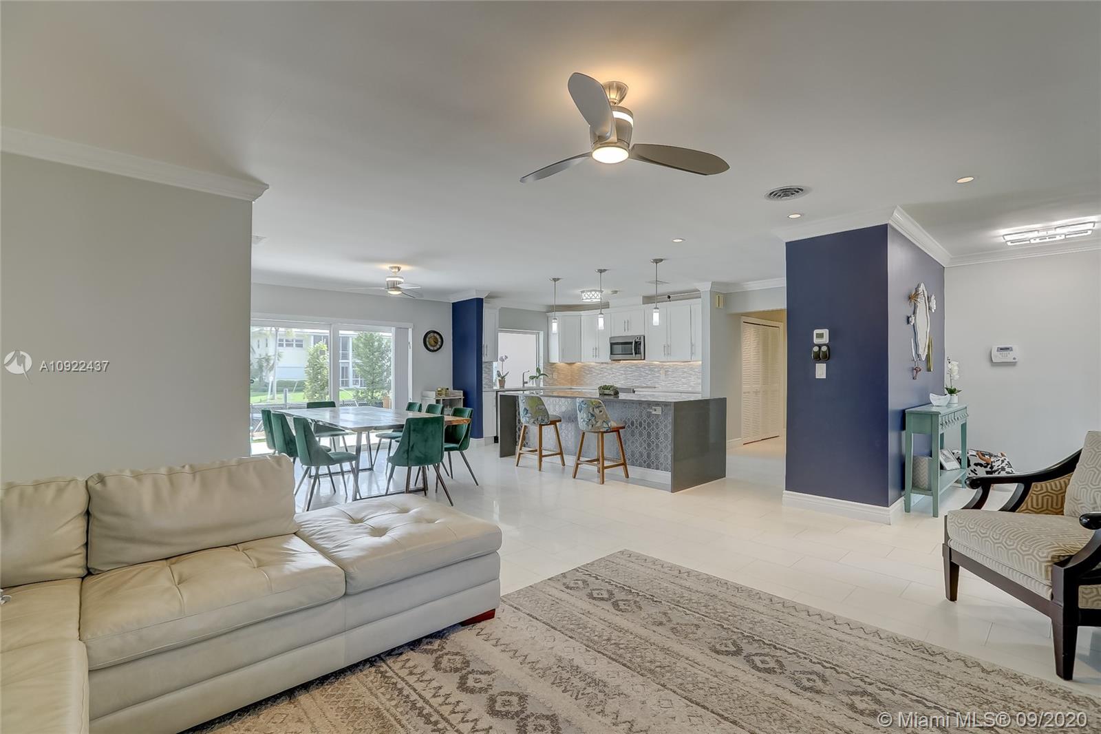 Beautifully remodeled Bermuda Riviera home on Galt Ocean Mile. This house has been completely remodeled w/high end finishes. Foyer entry leads to open floor plan w/sweeping water views from almost every room. The 4 BDRM's are split w master suite & walk-in closet. 80ft of water w/ocean access from wide canal feeding to Intracoastal. New 60 foot dock w/underwater lighting, new seawall cap & new higher code height. The cabana bath has a double vanity. New roof, new A/C, & all impact windows & doors. Crown molding, plantation shutters & baseboard, brand new appliances. Gourmet kitchen crafted from a renowned designer w/all quartz kitchen counter tops with 9 ft waterfall island,& dual zone wine cooler. Gated community, walking distance to shops & restaurants. Top rated Bayview school district