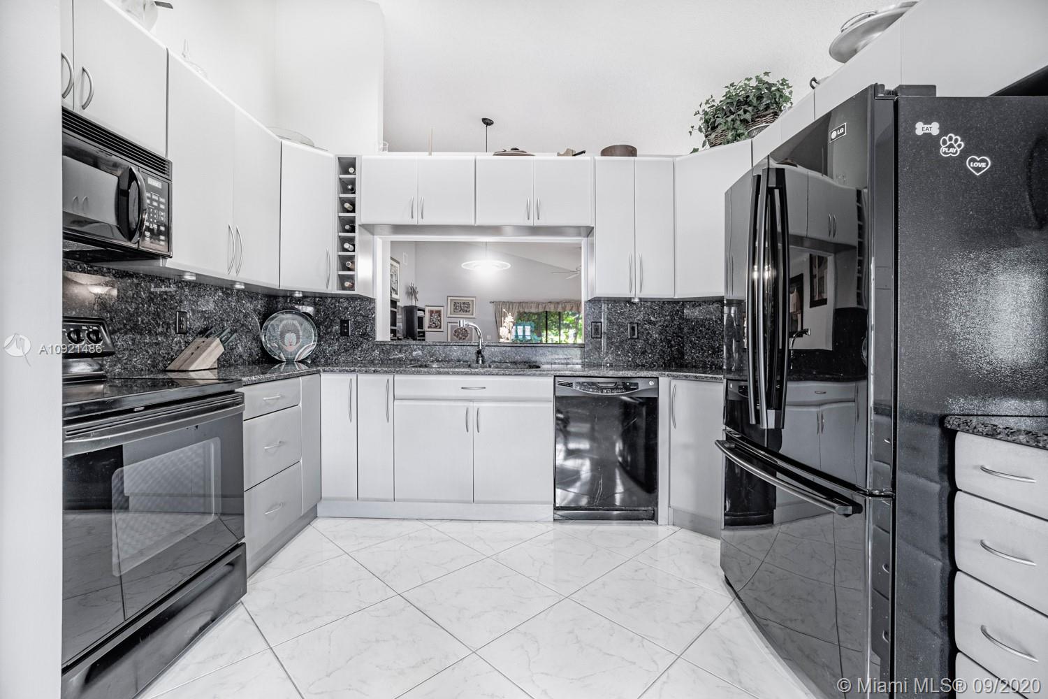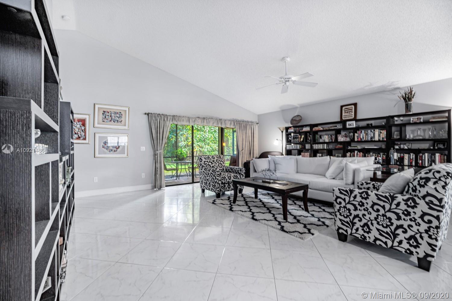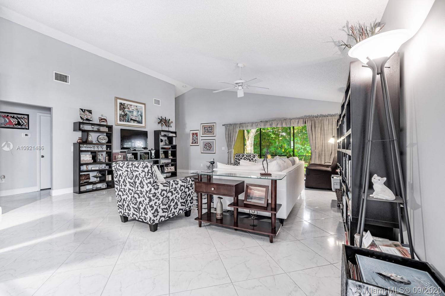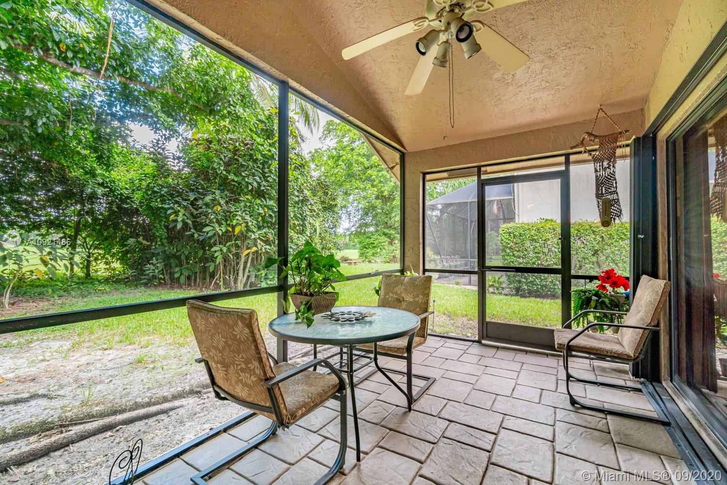 READY TO RELAX? Come enjoy this beautiful 3 bedroom 2 bath one-story home overlooking Jacaranda golf course. Open floor plan boasts vaulted ceilings, a modern kitchen with black onyx granite countertops, breakfast area and separate laundry room. Gray laminate flooring in all bedrooms. Spacious master suite with large walk-in closet. Updated spa-like master bath with double sinks, luxurious shower and whirlpool tub. AC unit replaced Sept 2019.Water heater in 2018. Accordion-style hurricane Protection on all windows and triple glass door to golf course view. Steps away from community pool and tennis courts. Low association fees include amenities, landscape & lawn care. Easy access to shopping, dining, airport and all expressways. THIS IS HOME! Come see for yourself today