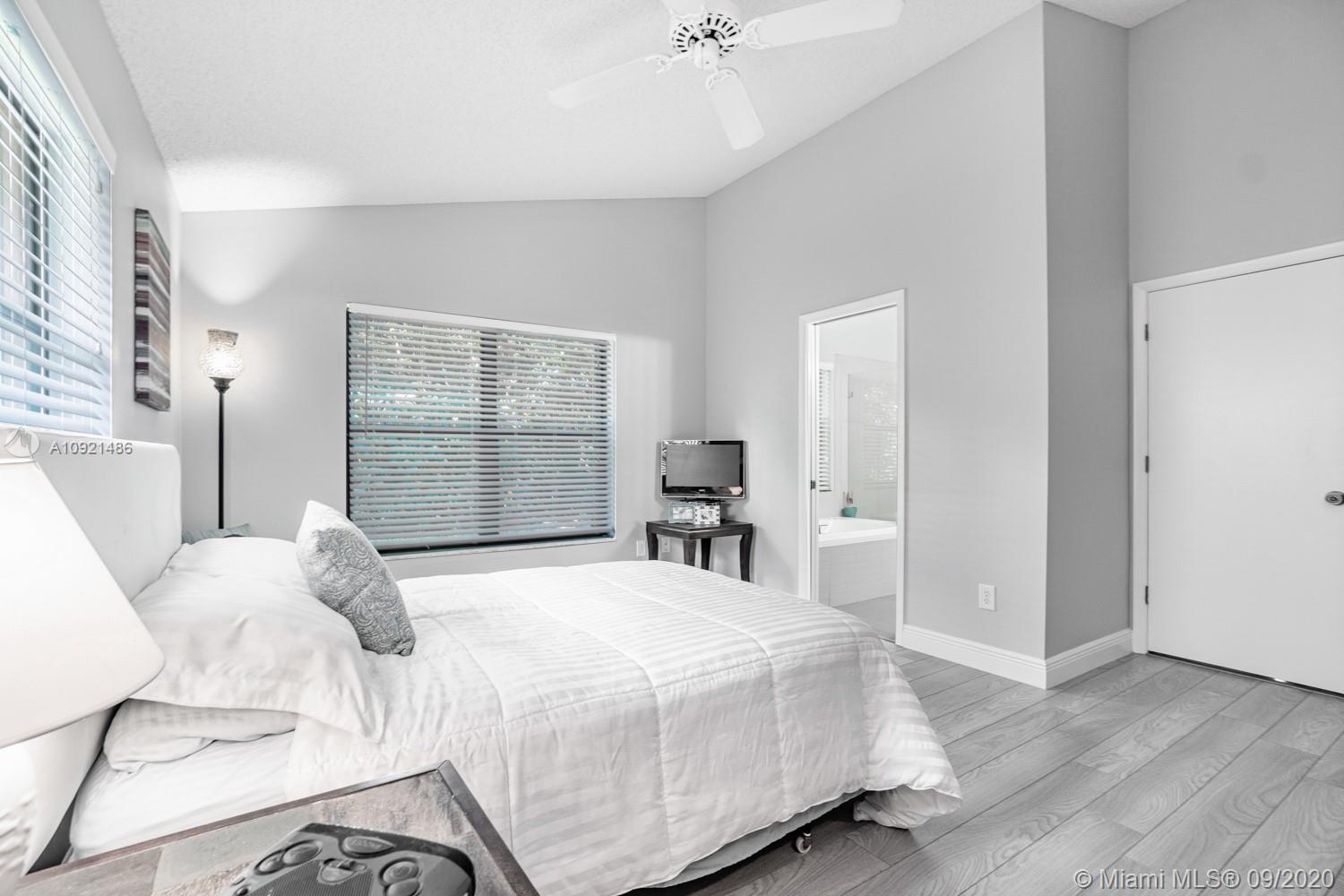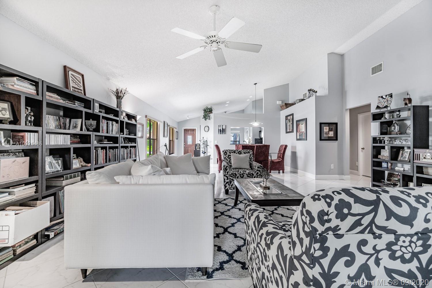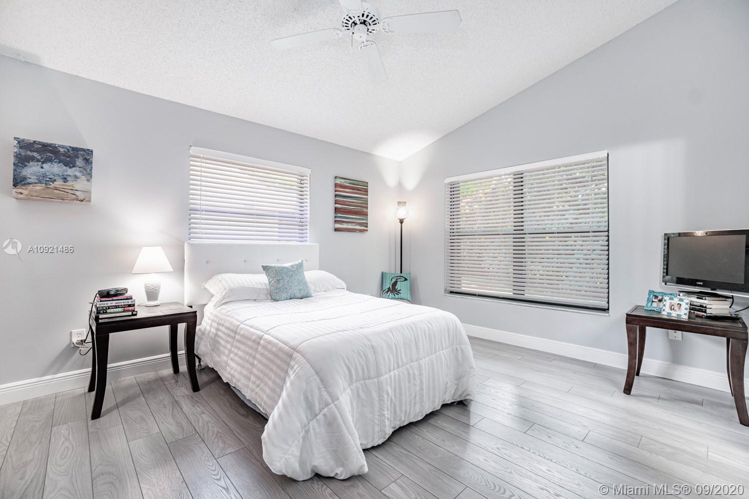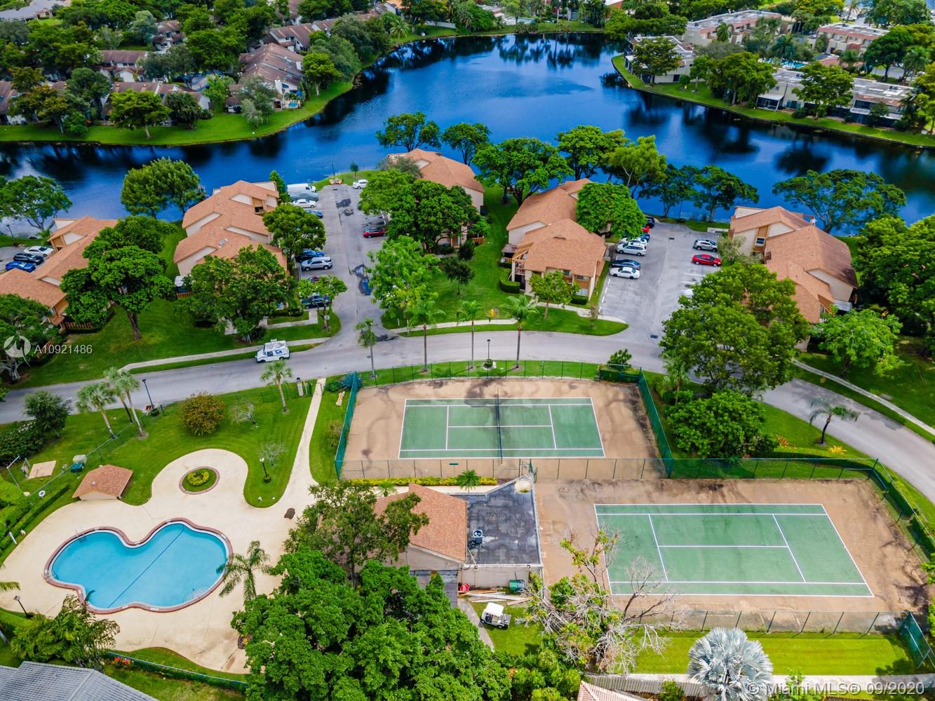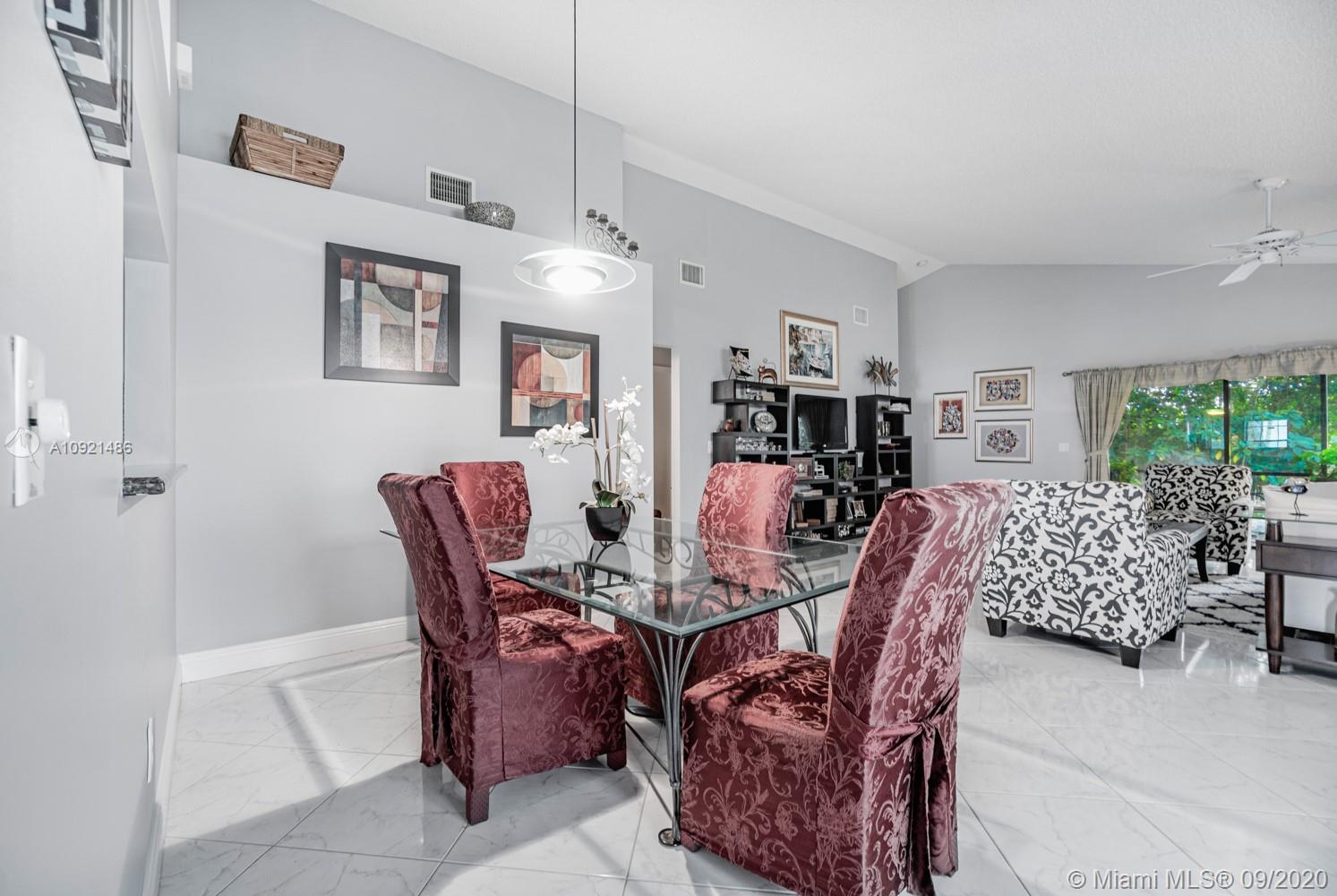 READY TO RELAX? Come enjoy this beautiful 3 bedroom 2 bath one-story home overlooking Jacaranda golf course. Open floor plan boasts vaulted ceilings, a modern kitchen with black onyx granite countertops, breakfast area and separate laundry room. Gray laminate flooring in all bedrooms. Spacious master suite with large walk-in closet. Updated spa-like master bath with double sinks, luxurious shower and whirlpool tub. AC unit replaced Sept 2019.Water heater in 2018. Accordion-style hurricane Protection on all windows and triple glass door to golf course view. Steps away from community pool and tennis courts. Low association fees include amenities, landscape & lawn care. Easy access to shopping, dining, airport and all expressways. THIS IS HOME! Come see for yourself today