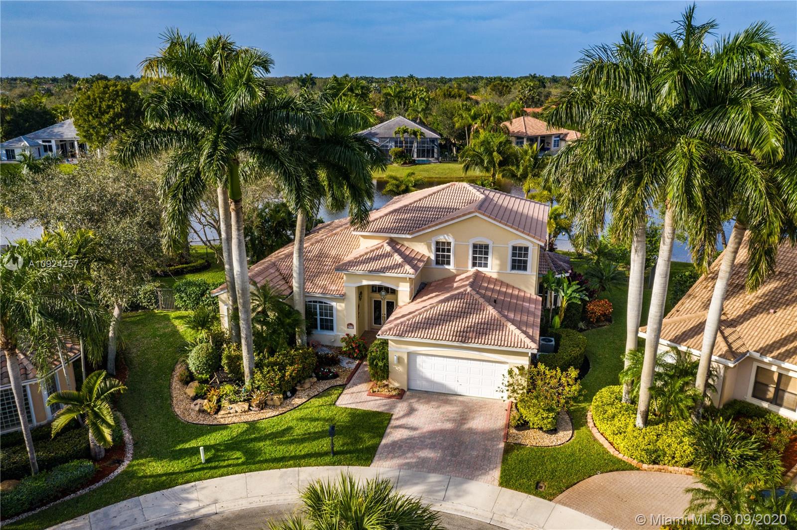 Weston Hills C.C. 16,095 sf pie shaped cul-de-sac lot w/gorgeous lake views 5B/4B 3834 Sq ft home boasts a Lg extended paved patio custom pool waterfalls new led lights, hot tub fenced Perfect for Entertaining! Surround sound system! Grand Master BR 1st Fl w/3 BR upstairs w/5th BR downstairs used as office/den w/custom closets/built-in Lg neutral diagonal Tile throughout, Carpet in BR. Spacious, Huge dine in Gourmet Kitchen w Granite/New Appliances/extra tall cabinetry/wine cooler/Lg island & Bar/Built in Elec. Sweeper/Vacuum System Formal Dining & Living Room WHCC an exclusive family-oriented community in City of Weston w/2 pristine 18-hole championship golf courses, known as Weston Hills Golf and Country Club. "A" rated schools and easy access to the hwy. AC's 5 yrs. Appraised 9/2020.