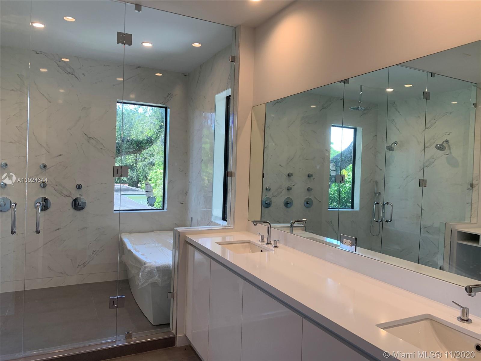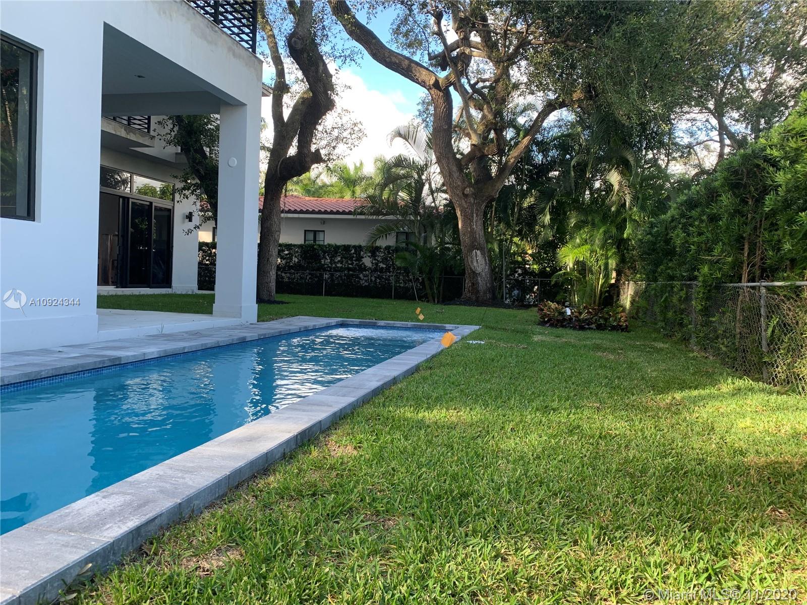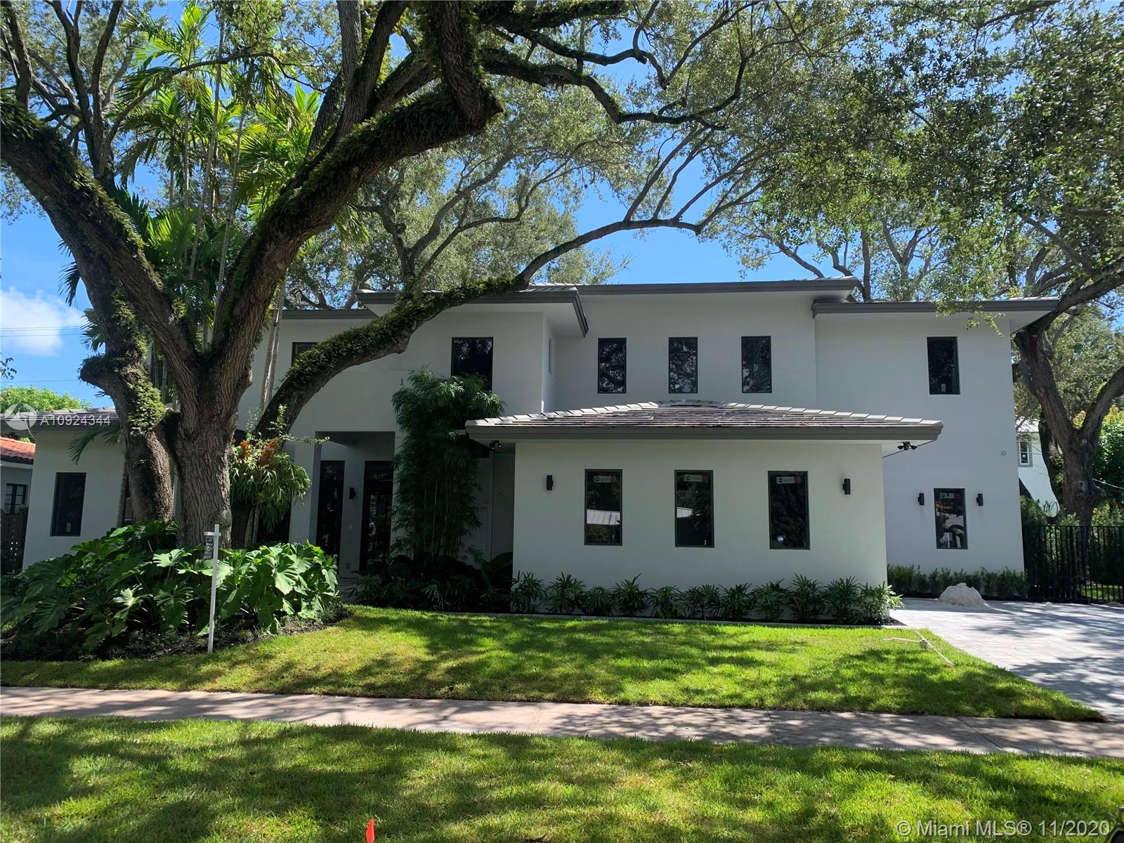 Brand new construction almost ready! Stunning contemporary design features 6 bedrooms 6 & 1/2 baths, situated among mature oaks, lap pool and lush tropical vibe. Perfectly located on a quiet picturesque South Coral Gables street. Clean modern lines and open spaces offer an effortless indoor outdoor transition for entertaining. Showcase gourmet kitchen with Meile appliances highlights the open concept. Italian porcelain tile and European wide plank oak floors, luxurious master and three additional suites all on 2nd floor, guest suite and maid/gym on 1st floor. 305 Luxury Living at its best.