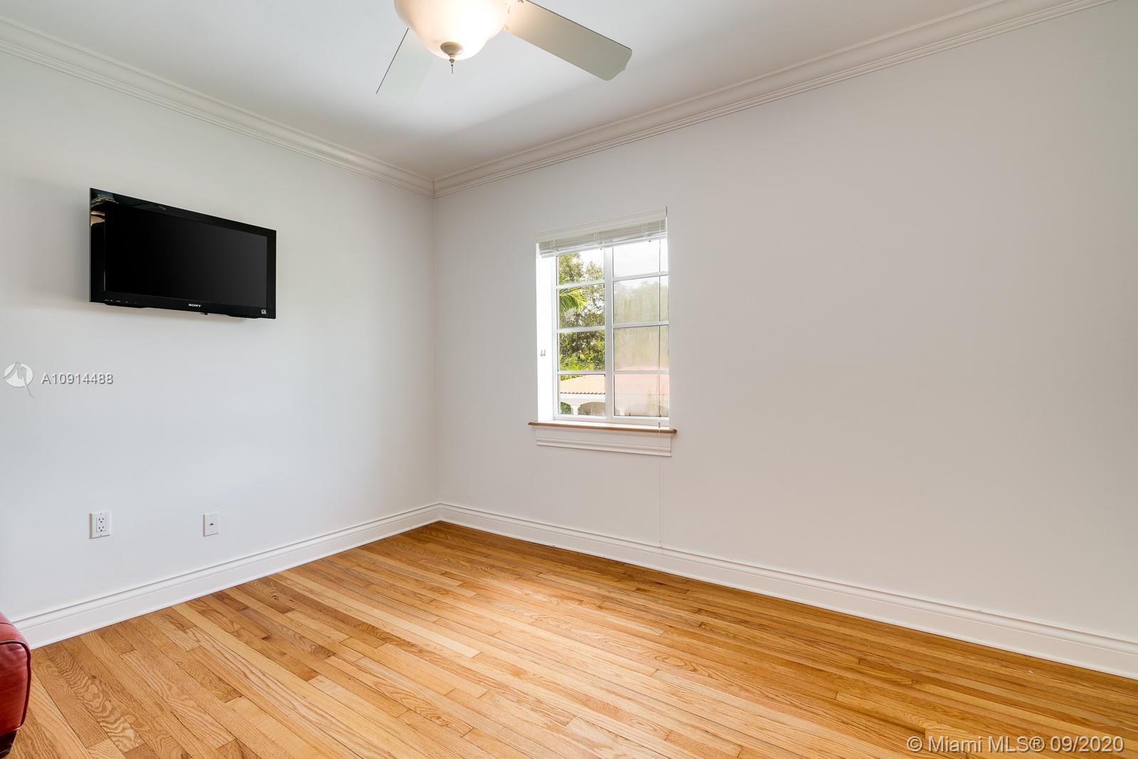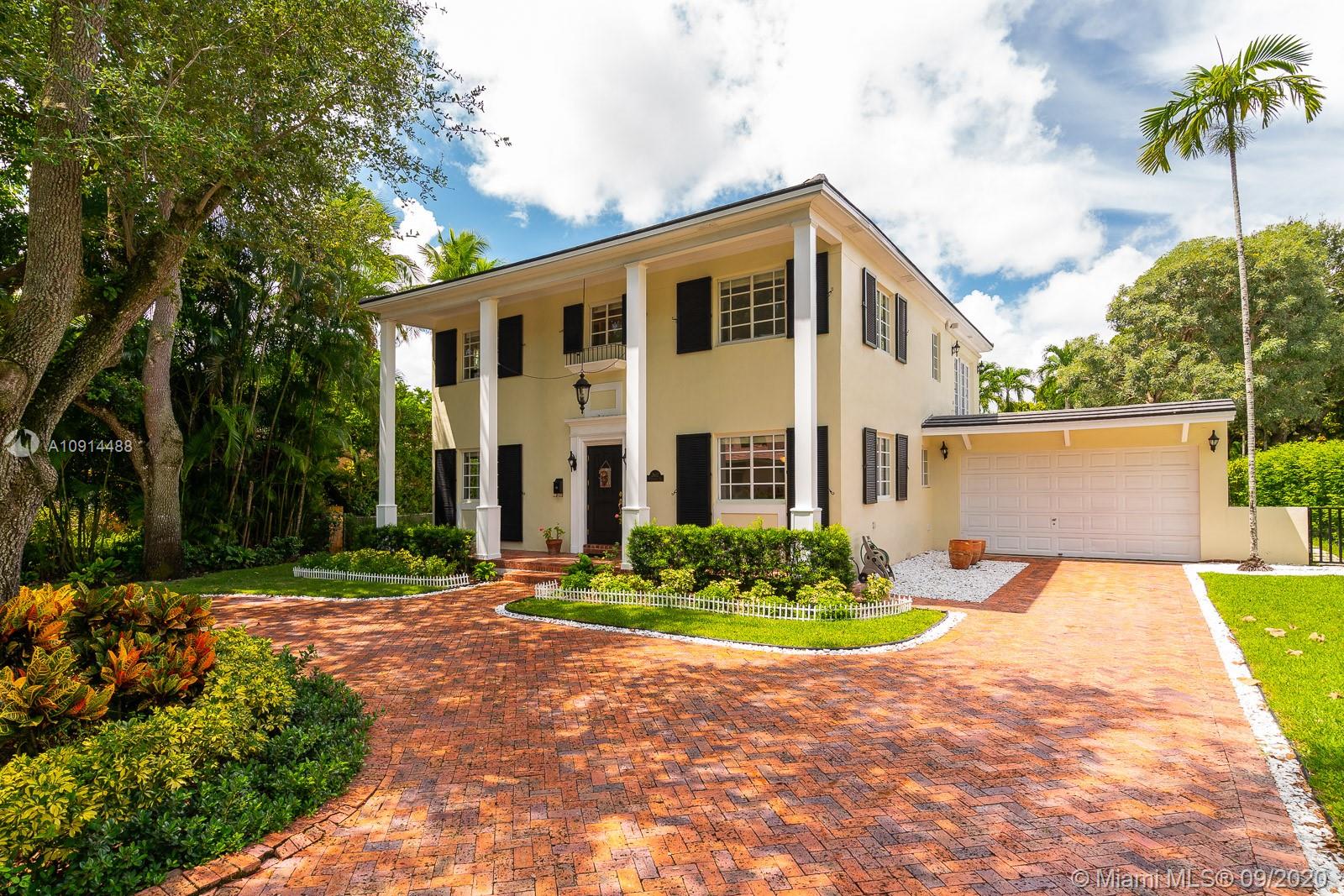 Spacious, beautifully maintained 4BD/4.5BA Colonial on one of the best streets in Coral Gables. Perfect for elegant entertaining and relaxed daily life. Enjoy refined architectural detail in the formal living and dining rooms. The spectacular open kitchen includes SS appliances, breakfast bar and a Florida room. Stately den is the perfect home office. Upstairs bedrooms include two lavish suites with en suite spa baths, walk-in closets and access to a private deck. Outside, an expansive covered veranda opens to the pool/spa and tropical grounds. New roof, saltwater pool system and pool deck plus impact windows and generator. Regal motor court and façade with shutters and tall columns create a gracious first impression. Close to outstanding golf, tennis and excellent shopping and dining.