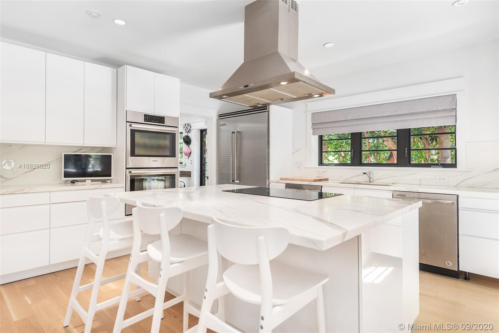 Bright, light & white totally renovated designer furnished residence w/ striking attention to detail highlighting spectacular high-end finishes throughout. Upon entry, perfectly manicured landscaping & quaint keystone walkways greet you before stepping into the stunning 4bd/3ba/2,945 SF move-in ready home on oversized 8,834 SF lot. Enjoy a new gourmet kitchen, gigantic carrara island / induction range, double dishwashers & professional S.S. appliances. Open concept floorplan w/ family friendly split bedroom layout. Master suite includes his/her walk-in closets & spa-like white marble bath. Fantastic private pool area & patio for entertaining. Full impact glass, laundry room, updated electric, plumbing & gorgeous white oak floors.. Truly unparalleled standard of precision & craftsmanship!