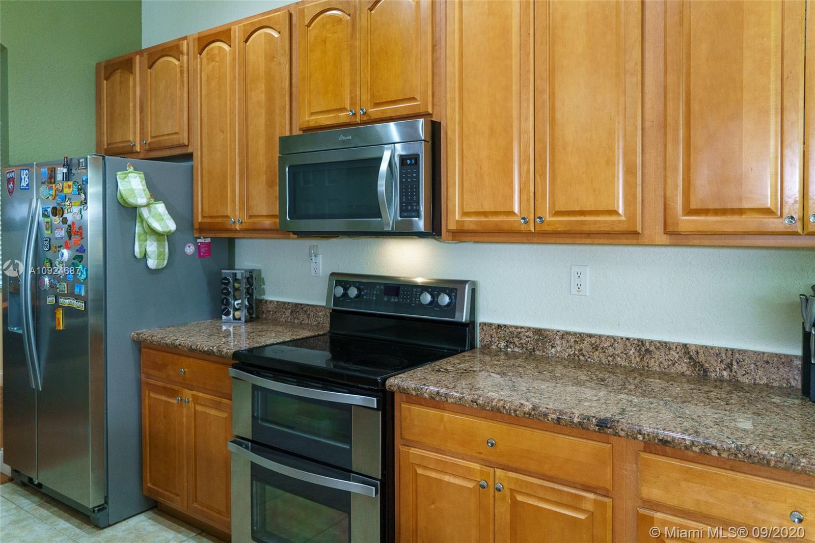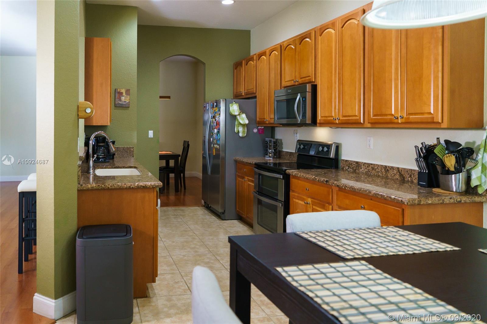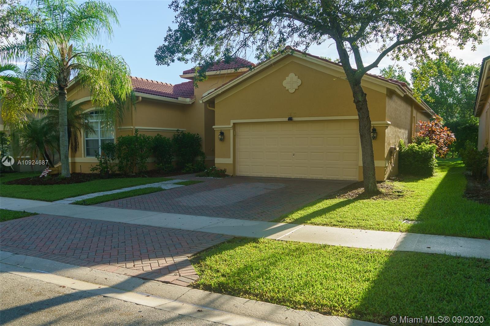 Gorgeous home with 3 Bedroom & 2 Bath with 2 car garage in the desired community Isles at Weston. Great layout. Spacious living and dining areas. Ceramic tile in the kitchen and bathrooms and wood laminate in all living areas. Stainless steel appliances with granite counters throughout the kitchen. Clubhouse with a community pool, playground, gym, and game room. "A" school rating. HOA includes cable, internet, alarm, and 24 hours, security guard. Seller to pay for the title and to choose the Title company.