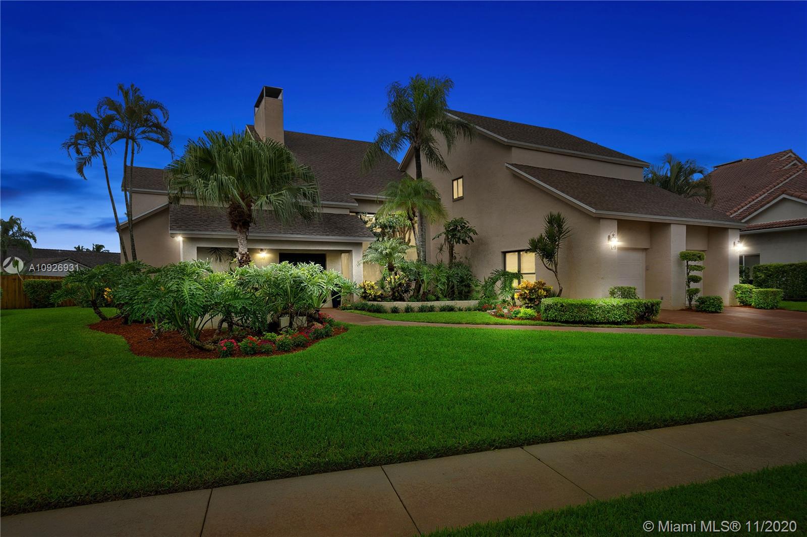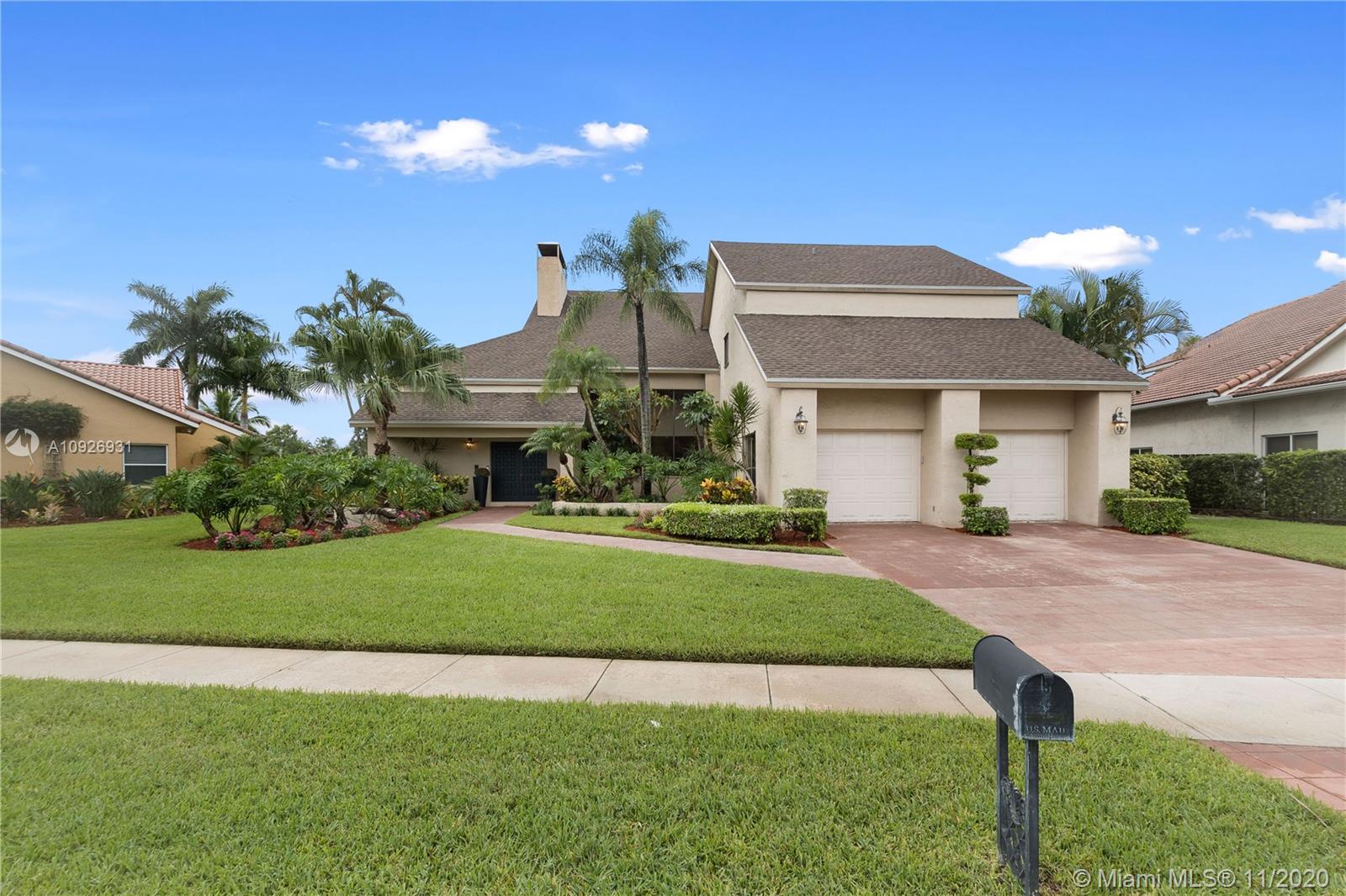 Price Repositioning so you can design your own dream home! Rare opportunity to own this ‘One of a kind’ two story custom masterpiece with spectacular water views from every room. This 4 bed, 4.5 bath home welcomes you with soaring ceilings and a Grand living /family room area with majestic double sided fireplace that will take your breath away!Spacious kitchen to create your own custom Chef’s dream adjacent to a large breakfast area~wet bar~lots of natural light~huge master bedroom with balconies~his/her bathroom~walk-in closets ~new roof ~newer A/C units~freshly painted~‘al fresco’ dining by the pool/spa,large laundry room~ space for an office~2 car garage~Must see~ across from Hawks Landing, located near 3 major airports, Sawgrass mall, American Heritage,Parks, Location meets perfection!
