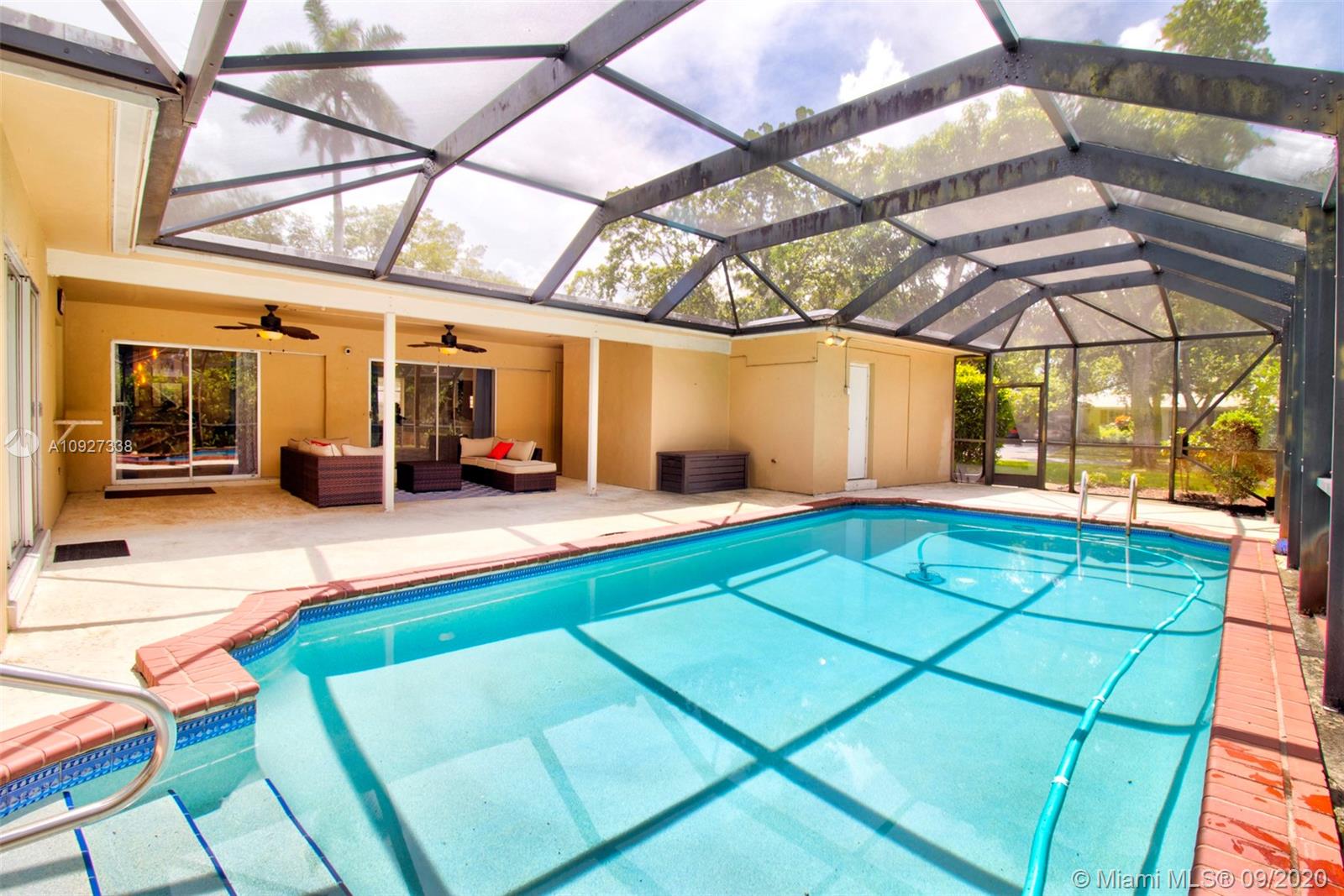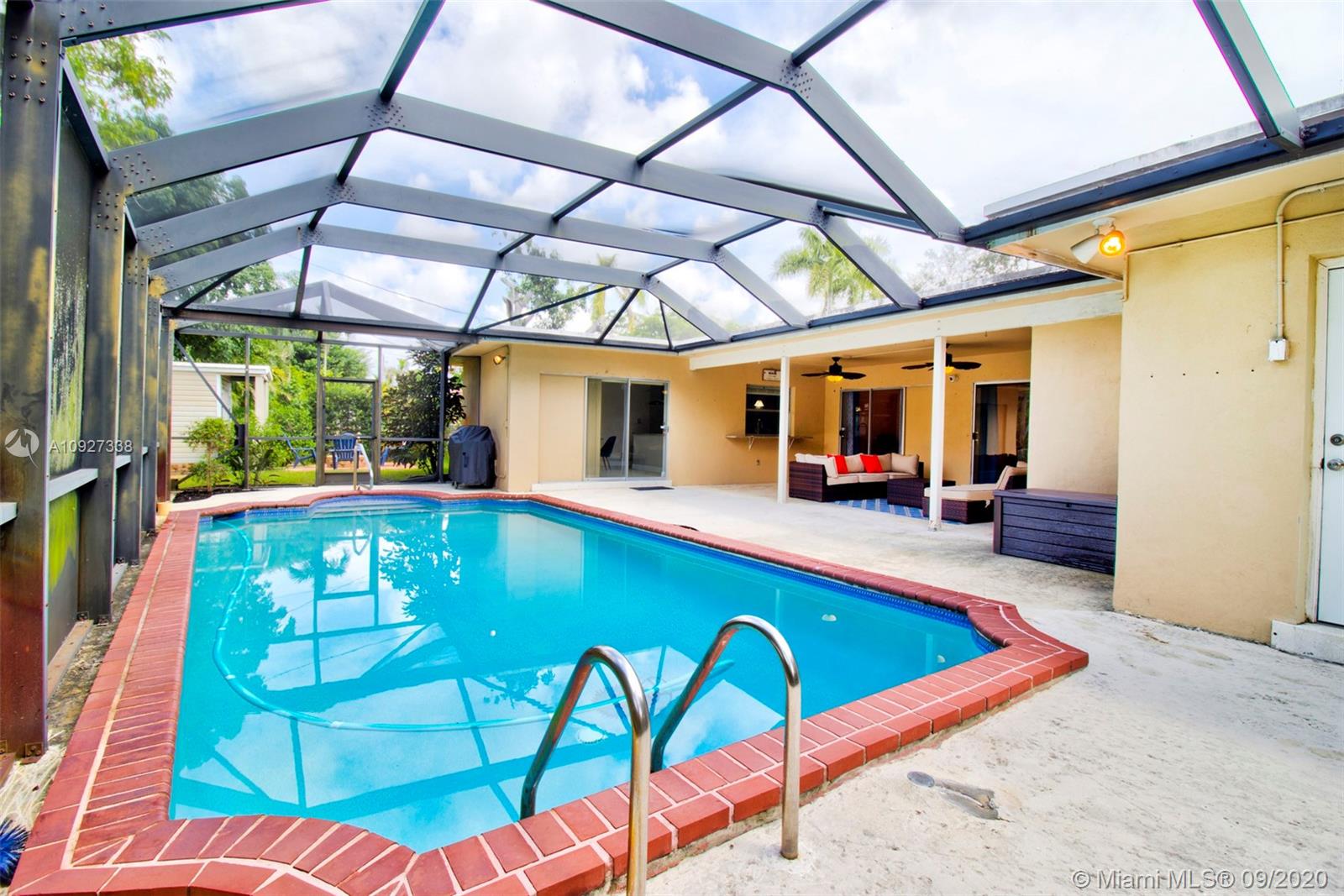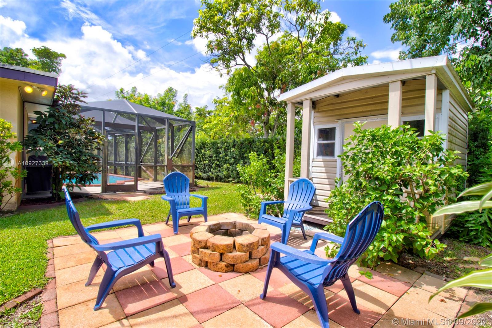 BEAUTIFUL 3 bedroom 2.5 bathroom pool home in the highly sought after neighborhood of Plantation Park! Located on a corner lot with circular driveway. Very well maintained with tons of charm! Updated and remodeled kitchen with wood cabinets, granite countertops and stainless steel appliances. Updated fixtures! Timeless terrazzo flooring throughout. Updated smooth textured ceilings. Fantastic screened in pool area plus covered porch. Great outdoor area for entertaining. PLUS +Bonus Shed and outdoor fire pit area! Avocado and Mango Trees in the backyard! Newer roof! Security cameras and hurricane shutters throughout! Great location near parks, shopping, restaurants, entertainment and much more!