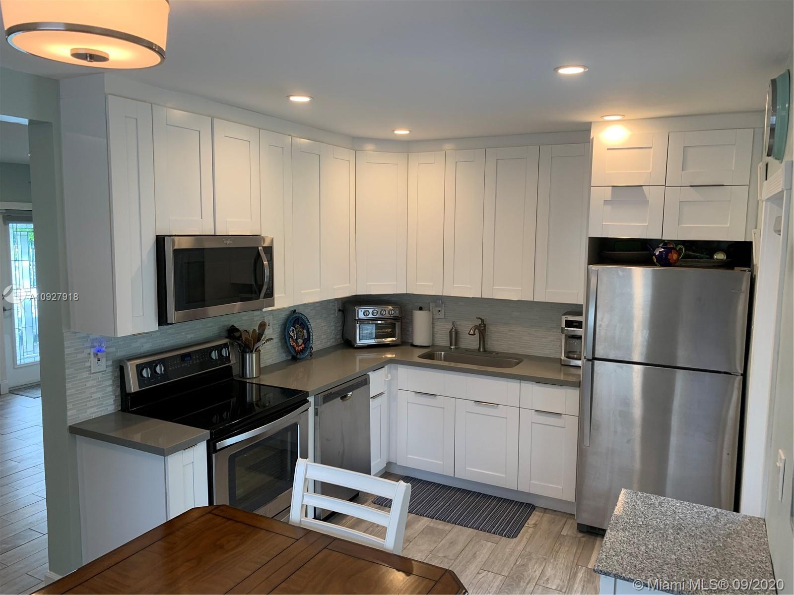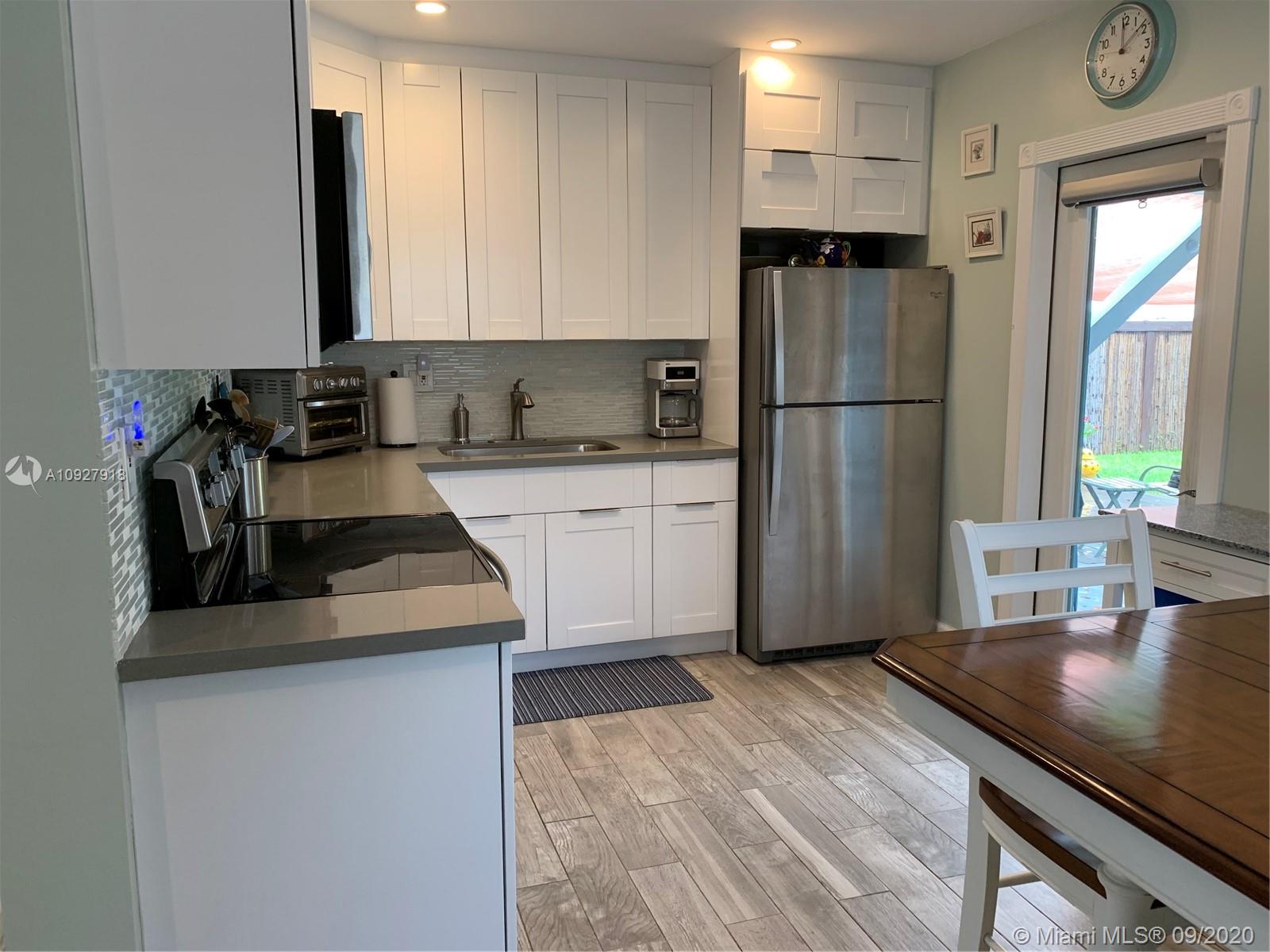 PRICE REDUCED! Clean, neutral tone single family home beautifully remodeled within the last four years!! Newer finishes include wood cabinets, quartz counter-tops, glass tile backslash, impact windows, central air conditioner. Beautiful bath vanity, designer tile tub/shower, high recessed lighting, extended teak deck where you can enjoy the large fully bamboo fenced back yard. Large shed suitable for storage, work station or studio. Mature shade trees. Plenty of space for pool at the backyard.