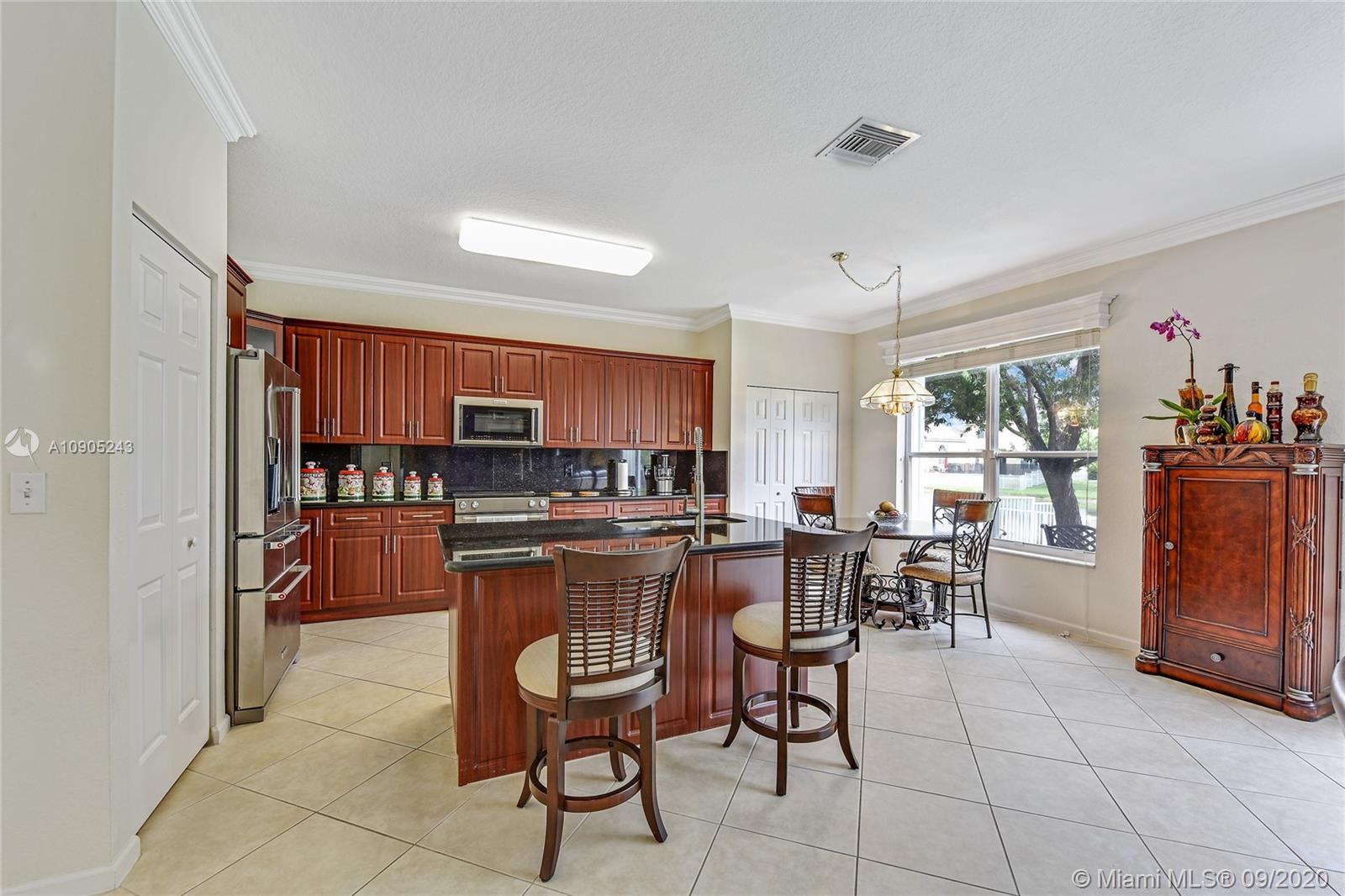 Beautiful lakefront two story home in Silver Isles community by GL Homes, featuring 5 bedrooms, 3 full baths, formal sitting and dining room, spacious family room, beautifully remodeled kitchen with SS appliances, granite countertops, 48 inch cabinets, center island, breakfast area overlooking the lake. Spacious two car garage with large brick paver driveway. One bedroom and full bathroom on first floor. Master bedroom with tray ceiling upstairs with two large walk-in closets. Laundry room upstairs. Ceramic floors throughout the main living areas. Crown molding throughout home. Patio with brick pavers and fence. New sprinkle system, Close to Memorial Hospital, I-75, Miramar Regional Park, walking distance to Home depot, shops, and restaurants.