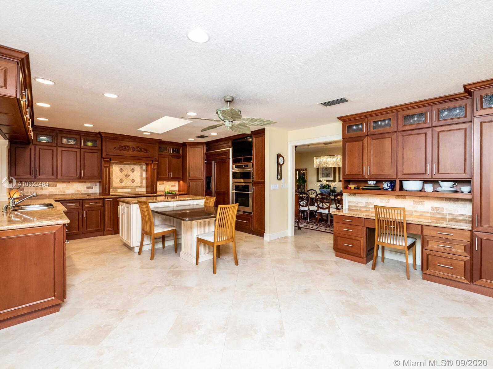 Spectacular 5BR/6.5 BA nestled in Maplewood Isle, a 24/7 manned gated community of only 105 custom-built homes and winner of 2016 Mayor's Rose Award for most beautiful neighborhood. Gourmet kitchen with granite counter tops, abundant cabinets and unique details throughout. Two self-cleaning ovens, two dishwashers, hot water dispenser, built in warming drawer, microwave convection oven and easy access to a full coffee bar area with built in Miele espresso machine. Main refrigerator, two beverage refrigerators and a wet bar. Master bedroom with walk-in closets and a large master bathroom with a whirlpool bathtub (1 of 2 in home). Central vacuum system. Beautiful pool with spa in a tropical setting with a tall privacy hedge. Great landscaping and a circular driveway that fits up to 12 cars.