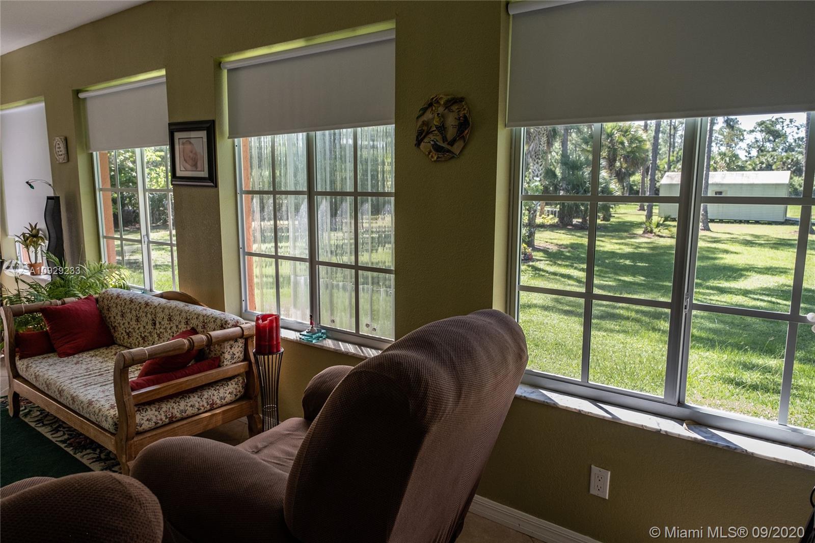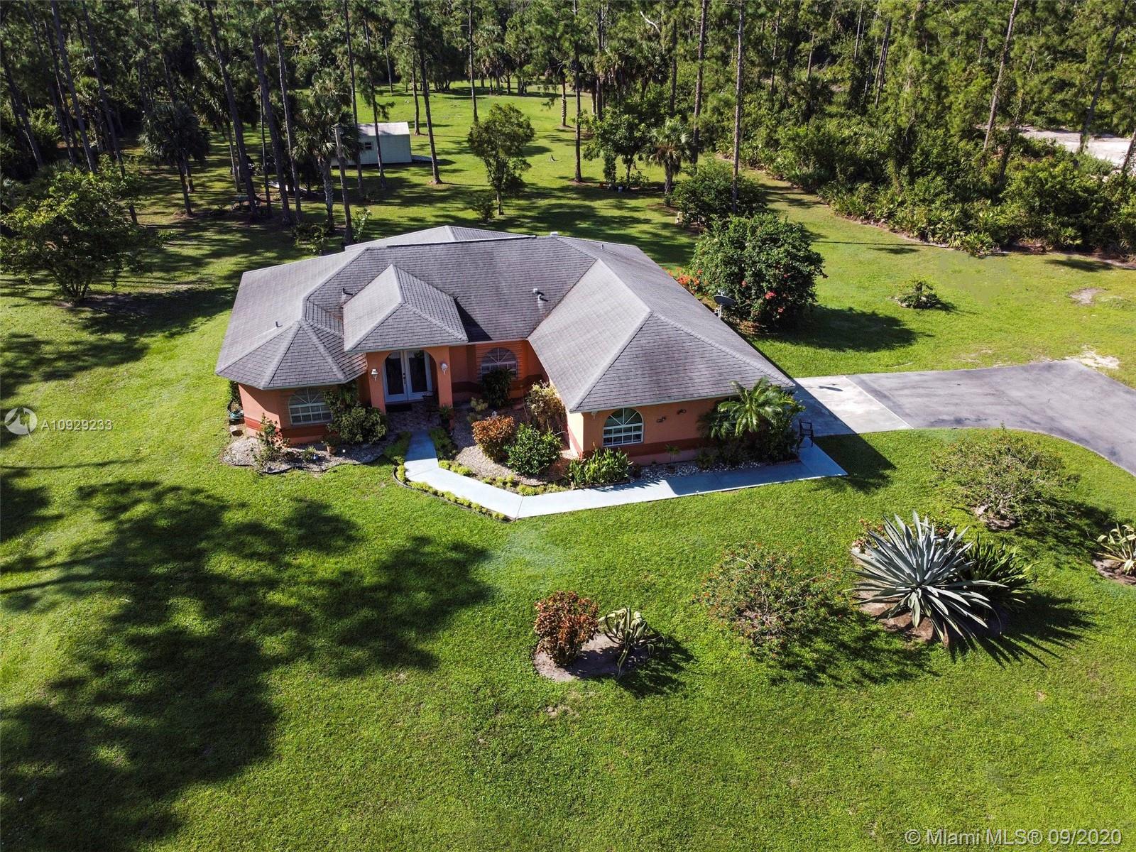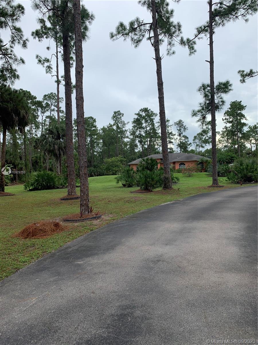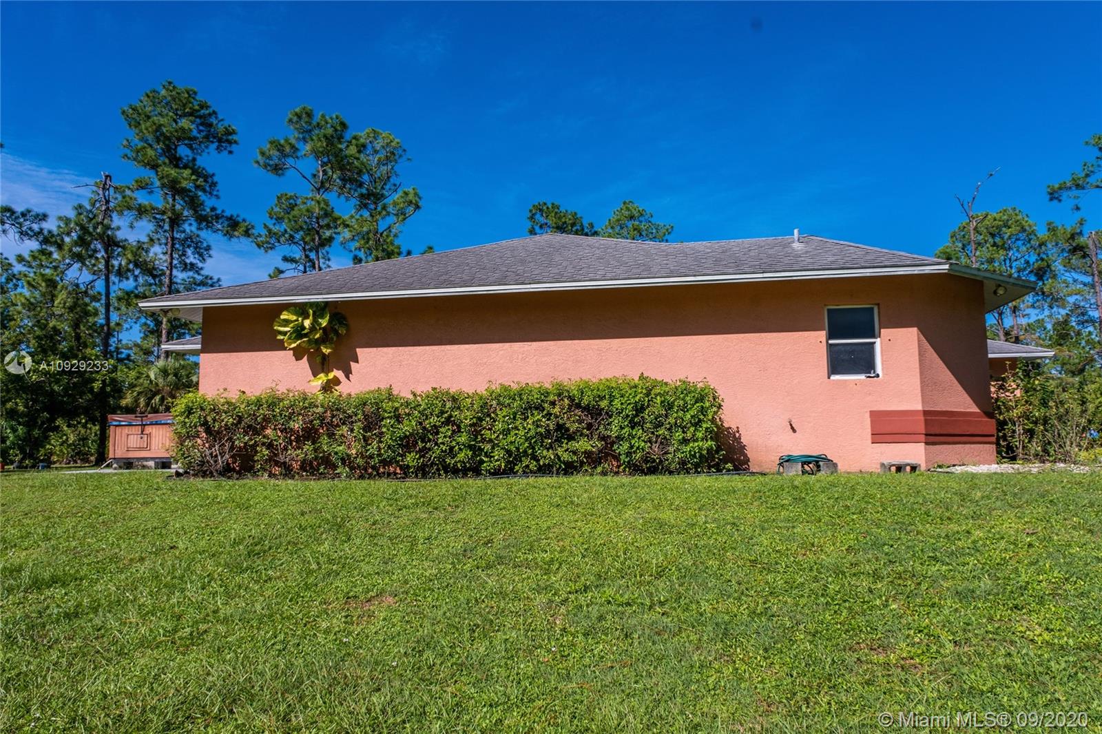 An elegant driveway entrance welcomes you to this impeccable and spacious house on a nicely manicured landscape and very private 2.73 acres in Golden Gate Estates. This property features: asphalt paved long driveway, 3bed/2bath, split bedroom floor plan, tiles throughout, granite counter tops, full size washer and dryer, 2 car garage, only 4 months old a/c air handler and condenser, newer water filtration system, 60 garden sprinklers connect to a separate irrigation well pump, 12’x 24’ patio storage shed, enclosed lanai, and more. Plenty of room for pool, barn, guest house, garage for toys, etc. No neighbors across the street for added privacy. Call listing agent for showings and details.