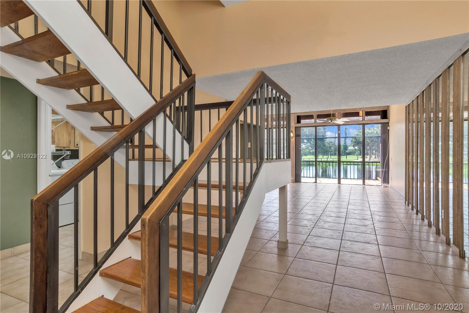 Centrally located in the heart of Pembroke Pines at the very desirable Villa Central Complex! Unit features a bedroom and full bathroom on the ground floor. Large master bedroom & second bedroom upstairs, each with en-suite bathrooms and new floors. Home boasts an open concept with lots of light and a screened patio that lets you take in views of the lake and the golf course. Don't worry about carpets because there are none! Home has hurricane shutters. Newer kitchen and laundry appliances. ADT alarm system is installed. For your relaxation, the Community maintains a pool as well as tennis and basketball courts. ENJOY!!