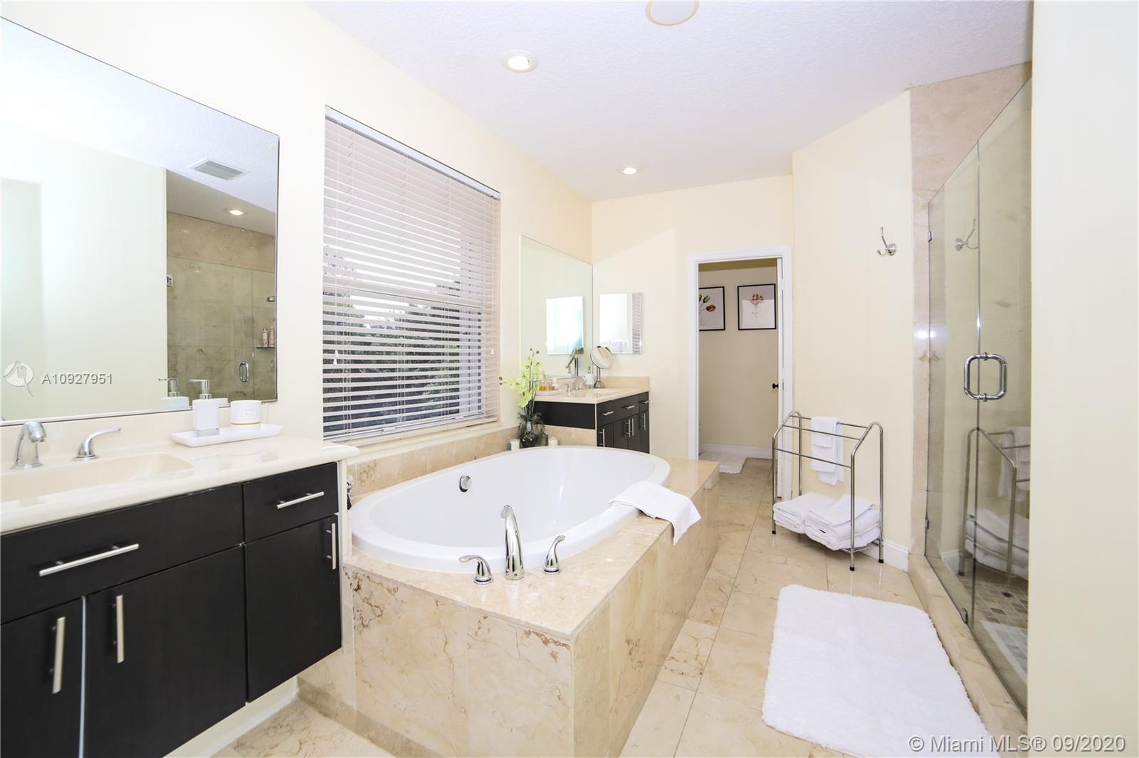 Beautiful spacious home with 7 bedrooms and 5 full bathrooms located in the prestigious community of Weston Hills Country Club. Great layout with 2 bedrooms downstairs. The perfect in-law/guest suite and second room can be used as a playroom. 5 bedrooms upstairs including an office with walk-in closets. Master bedroom with custom his and hers walk-in closets and updated bathroom with a hot tub. 2 car garage with a driveway with space for 4 more cars, Gourmet kitchen with wood cabinets and stainless steel appliances. Nice outdoor, professionally landscaped, Pool with new diamond brite resurfaced, color LED light and heater. Accordion shutters throughout. Plenty of storage and more!! An impeccable and very well maintained home with access to A+ schools. PRICED TO SELL!