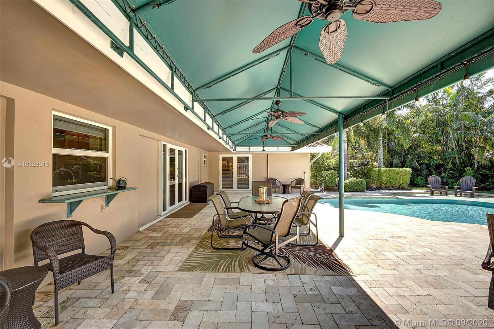 Absolutely the most desirable location ... Coral Ridge Country Club Estates. Just a few minute walk to the beach, restaurants and Bayview Park, this 4/2 boasts a privacy fence and custom-designed saltwater free-form pool with an inviting sun shelf and travertine deck surrounded by lush landscaping. French doors from the master bedroom, dining room and kitchen/family room all lead out to the large covered patio, with lighting and fans. With newly remodeled guest/cabana bath and garage flooring, this beautiful and impeccably-maintained home is on the market for the first time since 1993. Freshly painted inside and out, with porcelain tile, SS appliances, and impact windows and doors throughout. Sun, swim and entertain in this move-in ready home in a delightful neighborhood.