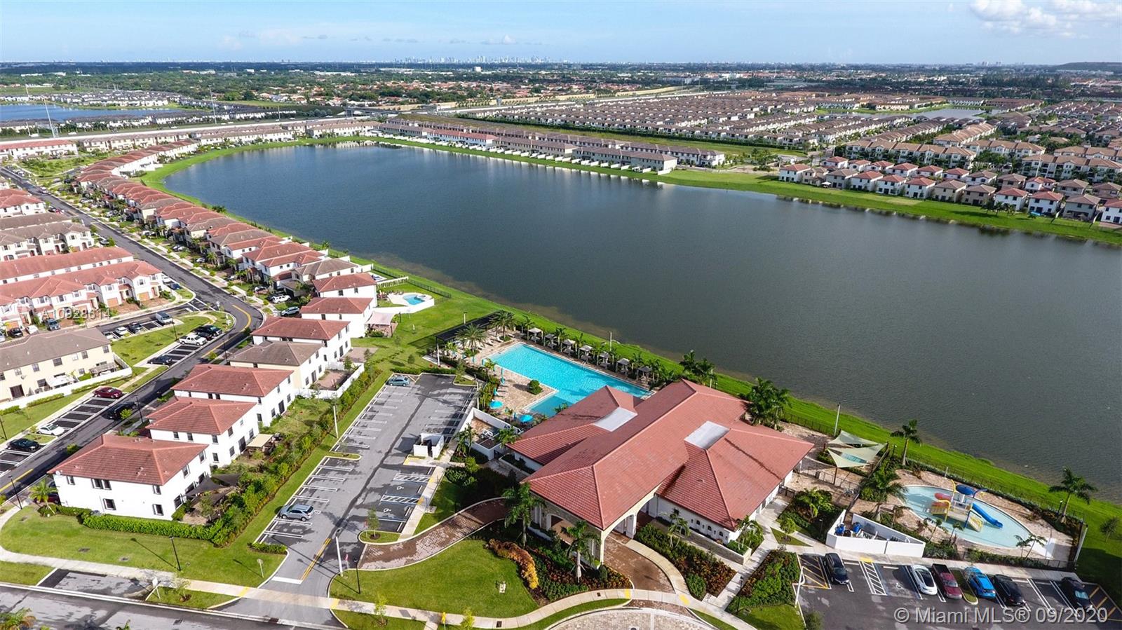 One of largest townhouses in NEW AQUABELLA gated community. This home features 4 bedrooms, 2.5 baths in 1,914 Sqf with a modern kitchen, stainless steel appliances, double-door refrigerator, Quartz countertop. Spacious Master Bedroom. New Laminate wood downstairs and staircase with carpet upstairs. Lots of natural light. Full size Laundry. One car garage and parking for up to 2 more cars on the driveway. Nice paved patio for outdoor entertainment. Residents will enjoy a great lakefront Clubhouse with children's playground, resort-style pool and state of the art gym. Excellent location, close to Miami Lakes’s excellent schools, shopping, restaurants and easy access to the main highways.