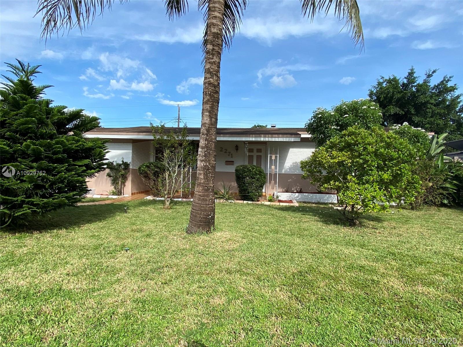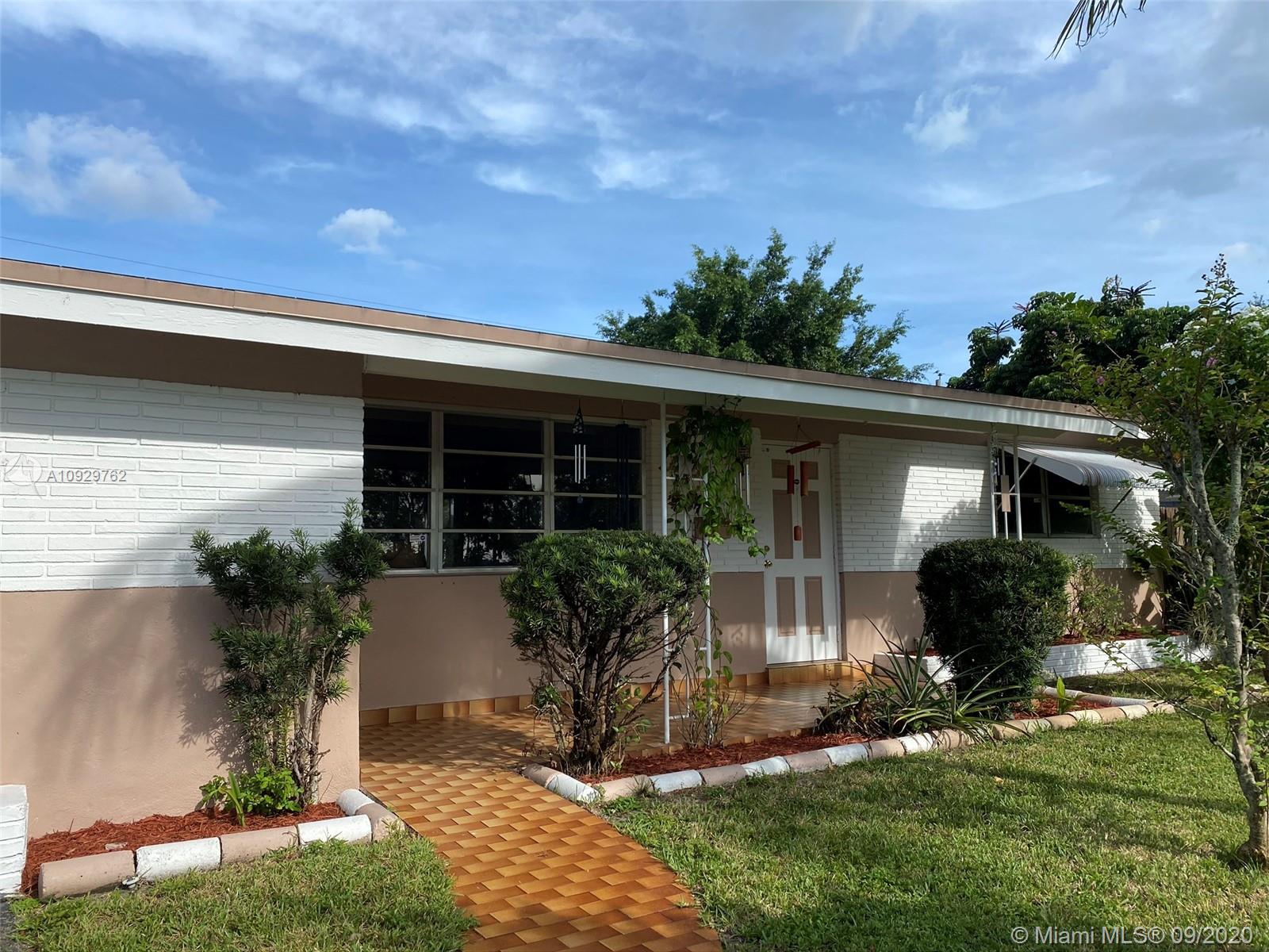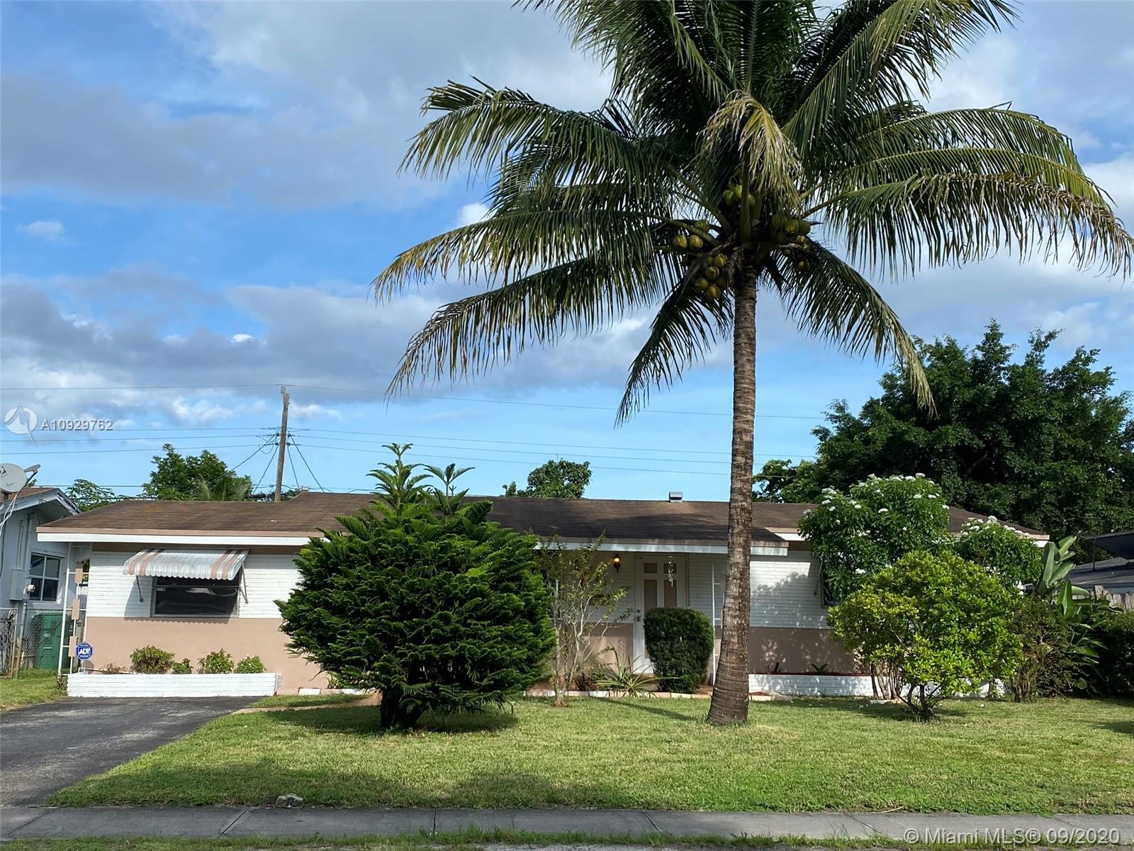 Charming three bedroom/one bath property on a beautiful tree lined street! This property features a split floor plan, light floor tiles, light kitchen, utility room, screened patio, attic, central air, sprinklers, awnings and shutters on back slider. Enjoy Florida living from your screened patio, build a pool in the spacious yard or sit in your covered front patio. Roof approximately 2007, 3 ton air (coils replaced recently). Close shopping, North Perry Airport and highway. Make this home your own! It will not last. SUBMITT OFFERS BY SUNDAY 9/27/20 OFFERS WILL BE PRESENTED ON MONDAY.