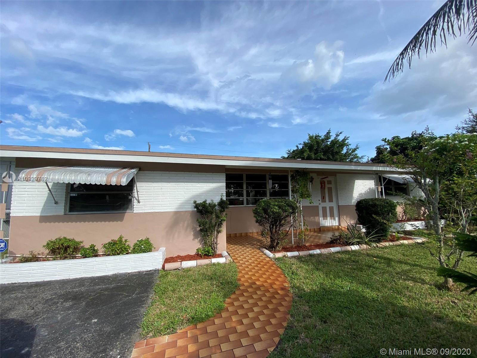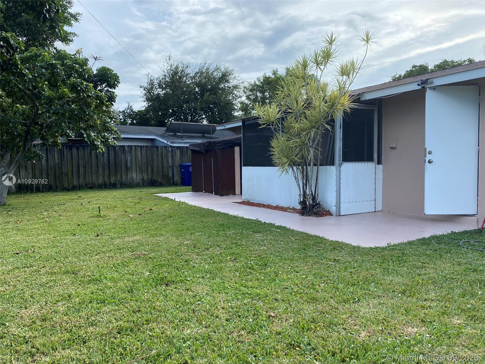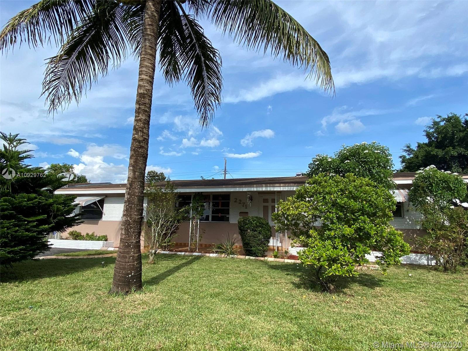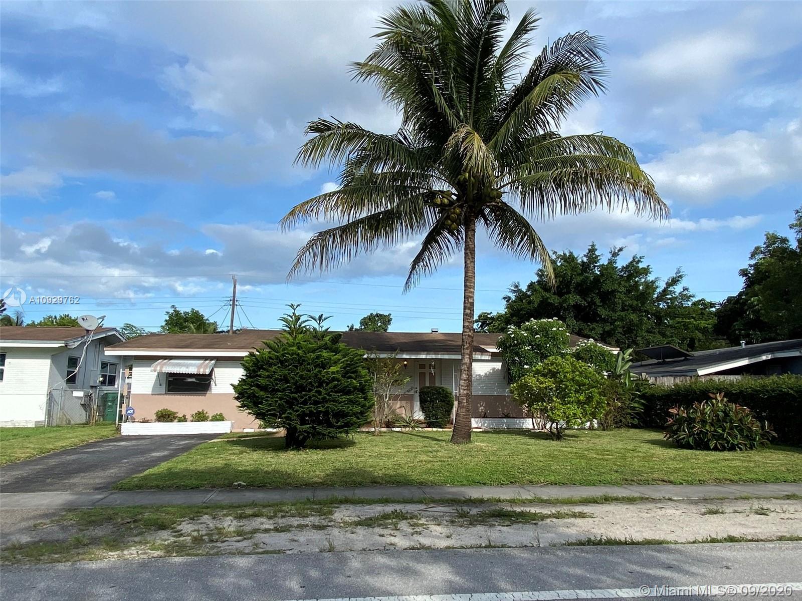 Charming three bedroom/one bath property on a beautiful tree lined street! This property features a split floor plan, light floor tiles, light kitchen, utility room, screened patio, attic, central air, sprinklers, awnings and shutters on back slider. Enjoy Florida living from your screened patio, build a pool in the spacious yard or sit in your covered front patio. Roof approximately 2007, 3 ton air (coils replaced recently). Close shopping, North Perry Airport and highway. Make this home your own! It will not last. SUBMITT OFFERS BY SUNDAY 9/27/20 OFFERS WILL BE PRESENTED ON MONDAY.