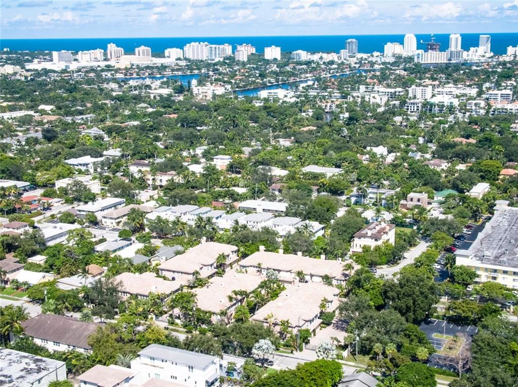 Gated East Side town house community close to Las Olas, Dining. Shopping & Beaches.3BR/2.5BA 2-level offers 2500 SF of living. Foyer enter opens to wide open living area fireplace, volume ceilings, palladium windows, formal dining and breakfast rooms, a well equipped updated kitchen. Other features incl: built-in wet bar w/exterior pass thru, 2nd level loft/office, a spacious master w/2-walk-in closets and a luxury bath, spa, double sinks. Storm shutter coverage throughout and a walled, gated (30x25) terrace for entertaining in your private spa!