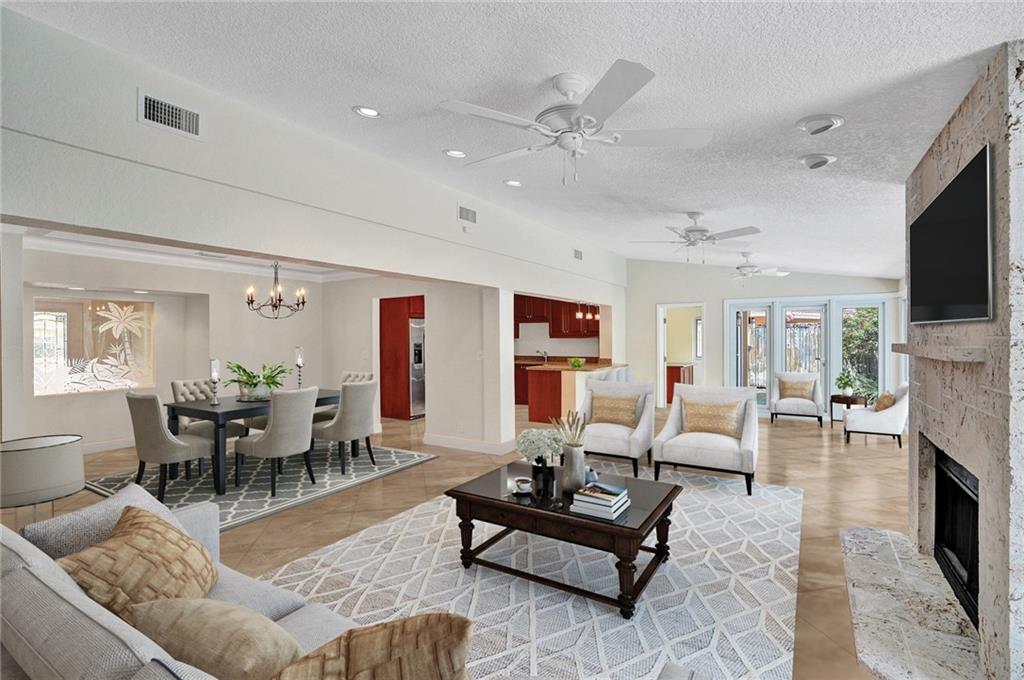Fantastic 4 bedroom 3 bath home in the heart of Coral Ridge Country Club. Open and spacious floorplan totaling 2,700 square feet. Beautiful marble flooring throughout, crown molding and recessed lighting. Impact windows and doors! Huge living space with fireplace and pool views! Spacious bedrooms. All bathrooms updated! Beautiful and private backyard features pool, lush landscaping and grass area. Big laundry room with storage. 2 car garage!