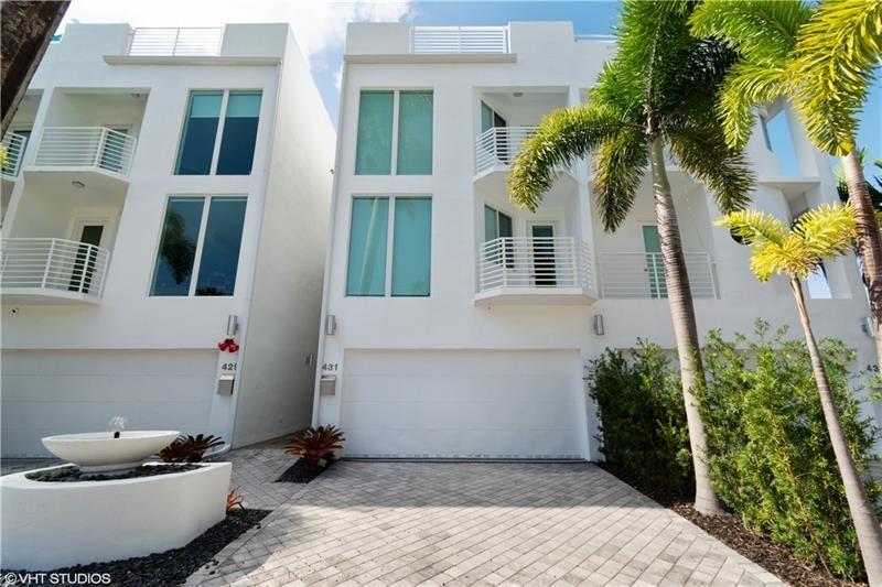 Tastefully updated modern townhome. Quality finishes and natural light abound. 3 full bedrooms and 3.5 baths overlooking the Las Olas Waterfront. Dockage for 40' boat right outside your door. Full 2 car garage and interior elevator add to this well-appointed unit. Short term rentals allowed, with ZERO HOA fees, make this a truly prime opportunity unique to the area. Full rooftop patio allows for amazing sunrise views, as well as sunset views of downtown Ft Lauderdale. Available turnkey and fully furnished for use starting on day one. Generate income or use as a low maintenance home in the heart of paradise. Call for an appointment before it's gone!