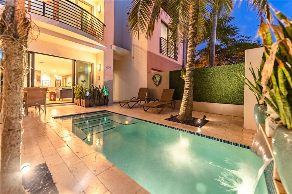 Everything you are looking for. Here is a sophisticated three bedroom three and a half bath home with its own pool, elevator, a huge family room and a walk out roof top terrace. Built new in 2008 and updated since the home features meticulously updated interiors, a very spacious plan, wide rooms, floor to ceiling windows, all V.I.P. suite bedrooms, office/loft, great room opens to the pool and private garden. Also a fabulous kitchen with island seating, steel appliances and premium cabinetry. The main bedroom suite includes a sitting area and three generously sized closets. The elevator goes to all three floors, perfect for catering moonlit evenings on the roof. This is the largest plan at Victoria Landing with a two car garage, additional storage and a driveway for two more vehicles