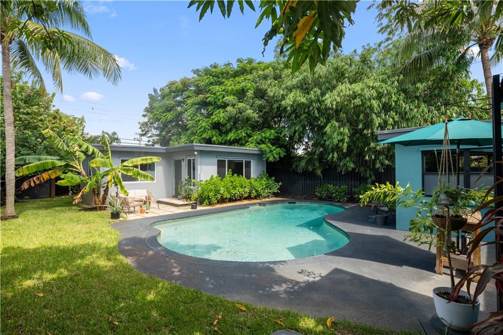 Gorgeous property consisting of two buildings!! Front house is an ENTIRELY REDONE 1 bed 1 bath with den or 2nd bedroom. UPGRADED kitchen has quartz countertop + stainless steel appliances. Cute remodeled masterbath with dual sinks. Guest house in back is partially redone, PERFECT investment or Airbnb property, can also be used as an inlaw suite! Newer kitchen with breakfast nook. Tile and laminate flooring throughout both units. Laundry room, shed, and shutters included. Resurfaced driveway fits up to 5 spots. It gets better! Enjoy lounging in the property's patio + pool all year long. This URBAN OASIS is in a central Fort Lauderdale area, less than 5 minutes away from sunrise blvd, near Galleria Mall and tons of restaurants & shopping centers, 10 minute drive from beach!