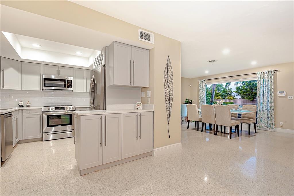 NEW TO MARKET in Famed "Imperial Point" on prime quiet street! Brand new kitchen/quartz counters & stainless appliances! Two Brand New Baths! Gleaming refurbished Terrazzo Floors & new tile in 3rd bedroom, LED lighting throughout! Brand new underground plumbing-all replaced!!! Roof 2004 & 2013. AC 2019! ADT Alarm System. Lush Tropical property-spacious private backyard-Entertainer's Salt Water Pool/lighting/tanning lounge+seating,child safe fencing,Aqua link app for control. Travertine marble patios. New PVC fencing. Over sized paver driveway. REDUCED!!! Don't miss this one!