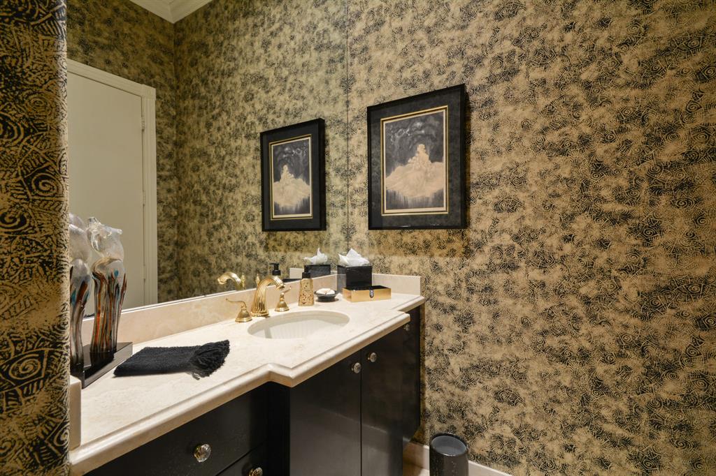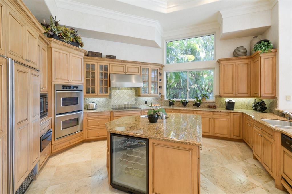 Situated on almost 1/2 acre, this luxurious estate with over 7,000 sq ft of living area enjoys spectacular lake and golf course views. The first floor offers a stunning living room, dining room, chef's kitchen, large family room, home theater, library, spacious master suite with separate retreat room and his and her master baths and 2 additional en suite bedrooms. The second floor offers an entertainment area and 3 bedrooms with adjoining baths. Outdoors, a lushly landscaped resort style pool and loggia complete the estate. The information herein is deemed reliable and subject to errors, omissions and changes without notice. All measurements are approximate.