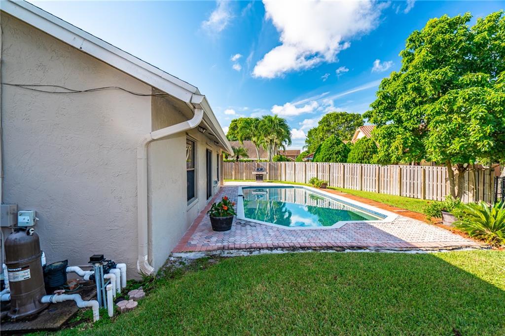 Welcome home and welcome to Country Address Encore, please come in. Your new home sets on an over sized corner lot, has 4-bedrooms, 3 full bathrooms, a pool and it is on water. This home has been well maintained, has a over sized two car garage, the yard is fenced in on all sides and has a fruit tree. Your community has multiple parks in the area, underground utilities, sidewalks and street lights. You are in walking distance to A+ Schools, Community Centers, Optimist sport fields and so much more. Cooper City also hosts multiple community family activities during the year. This home has a lot of opportunities, it just needs your touch.