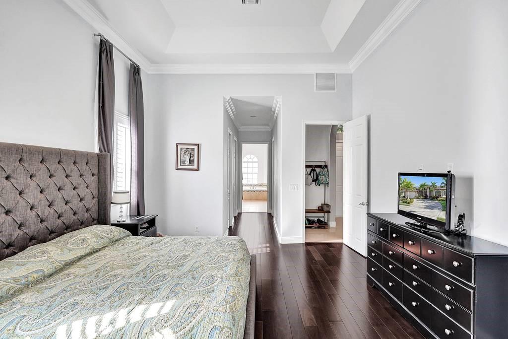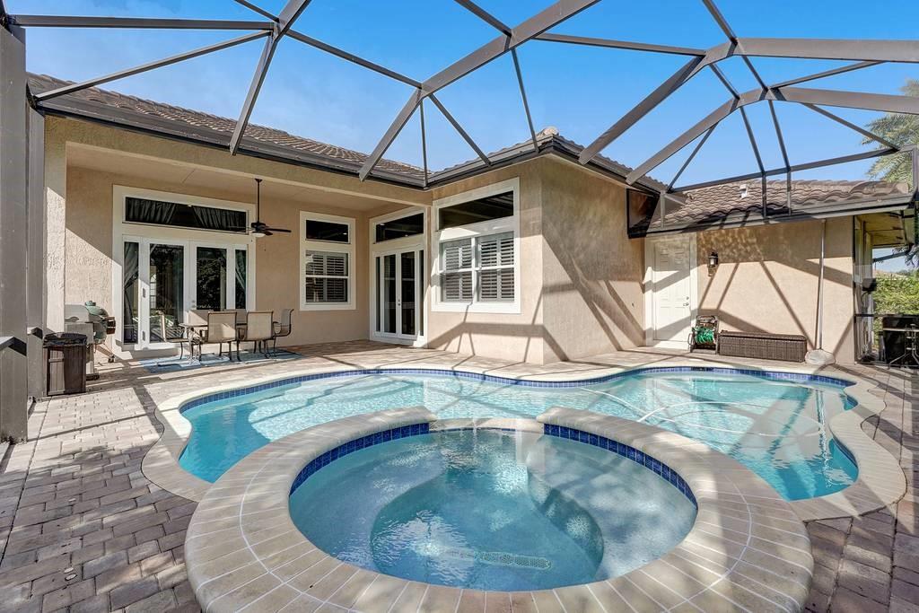 Stunning 4 bedroom 3 bath pool home located in Pine Island Estates. Built in 2014 this highly upgraded and rarely available one story floor plan has it all. Interior features include upgraded kitchen with 42 inch wood soft close cabinets, granite countertops, stainless steel appliances including double oven and wine refrigerator. Large open triple split floor plan with decorative crown molding, plantation shutters, porcelain tile in living area and brazilian wood flooring in bedrooms. Spacious master suite with 2 walk in closets, master bath with double sinks, shower, jacuzzi tub. Dining room with decorative coffered ceiling. Outdoor screened in private back yard with salt water pool and spa. Impact windows and doors. See attached feature list to see all the detail upgrades to the home.