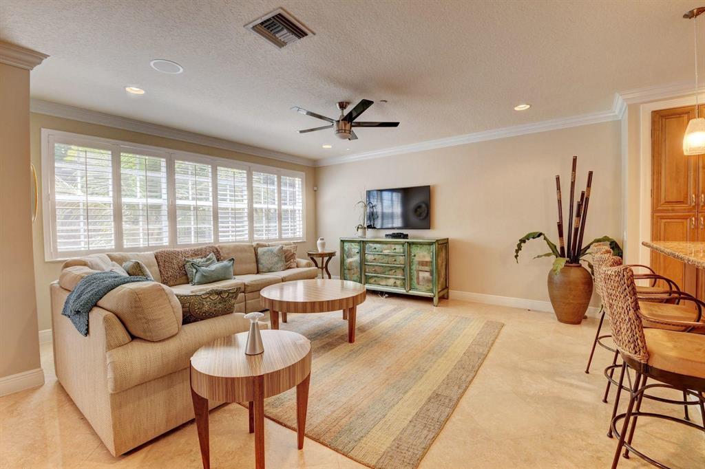 Beautiful luxury townhome with 3 Bedroom plus office and 2 car garage located in great East Boca Raton location. Trieste was built by Toll Brothers and has 109 homes. The main level has a large family room & wet bar, marble floors, & half bath. Sliding impact glass doors with plantation shutters lead out to an oversized pavered patio & fenced yard for enjoying outdoor living. The 2nd level has a beautiful kitchen with gas cooktop, double wall oven, granite countertops, breakfast area, living room, dining room, powder room, & an office that can be used as a 4th bedroom. The upper level has the primary bedroom with two large fitted walk in closets & an ensuite bathroom with dual sinks & a separate tub/shower. There are also 2 additional bedrooms, a hall guest bathroom, & laundry room.