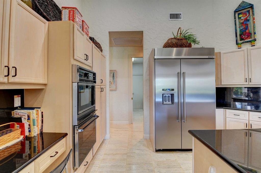 When you walk thru the double door entry of this beautiful home you will notice the spacious feeling, volume ceilings, and a lot of natural light. This immaculate, open and bright, one story home has 3 Bedrooms, 3.5 baths, plus office or den. Features include: neutral travertine tile, lots of hi-hats, fitted closets, fans, accordion shutters, sound system, wall oven, island kitchen, remote blinds, snack counter, 2 car plus golf cart garage, wood floor in office, and more. Entertain and enjoy the lifestyle on your private patio with large heated pool overlooking your serene lake view. Large master suite and master bath with jetted soaking tub, bidet, and 2 walk-in closets. Membership is mandatory w/ yearly dues and initiation fee paid before closing. Call for private showing. A must see!