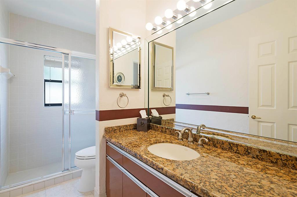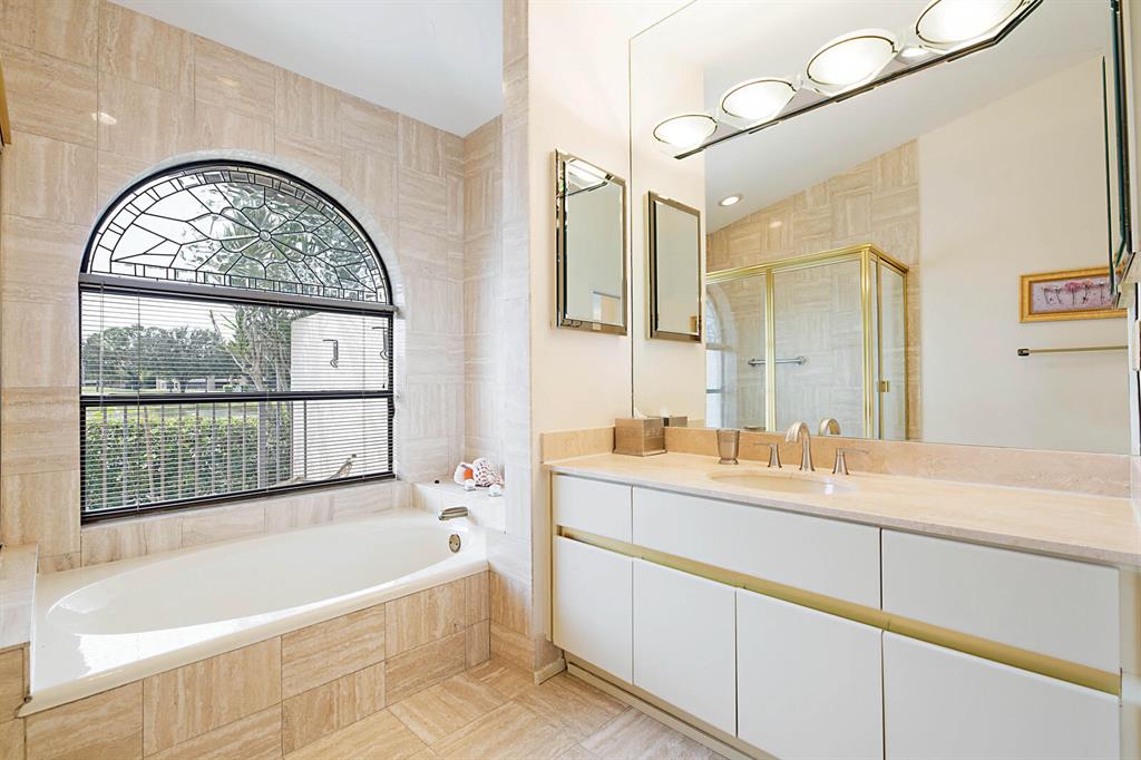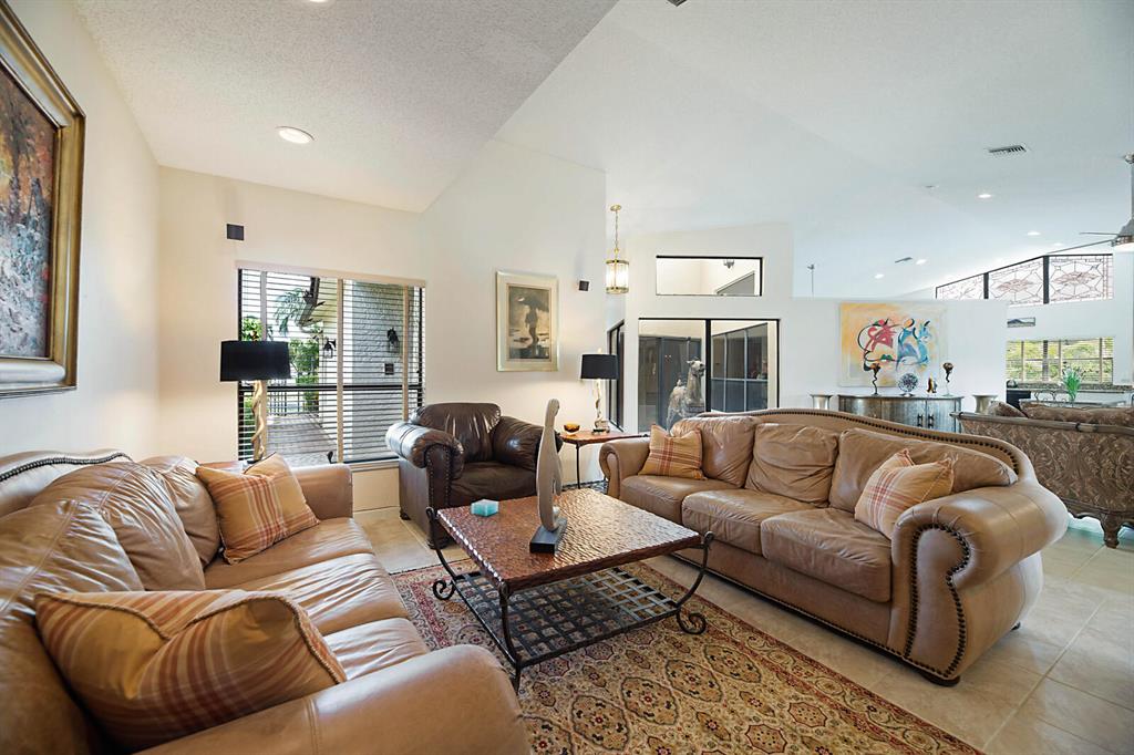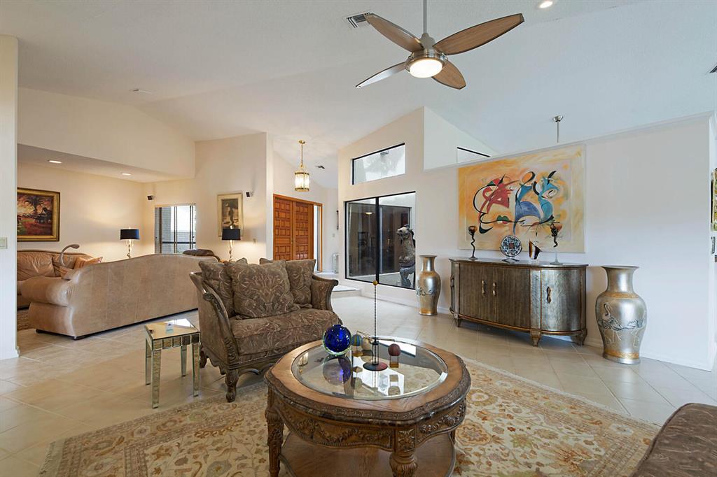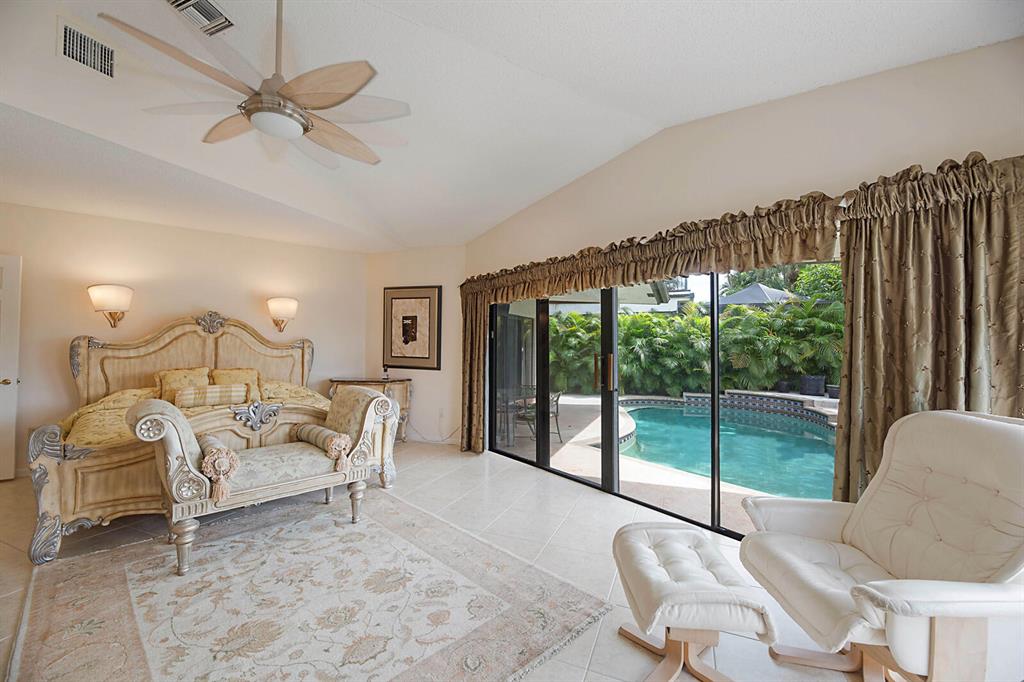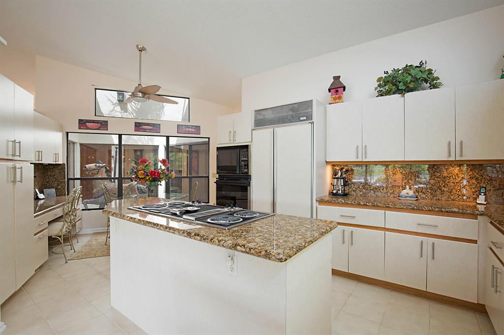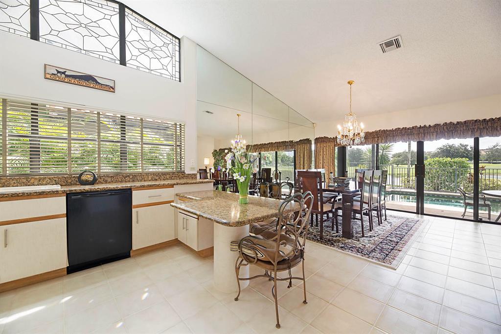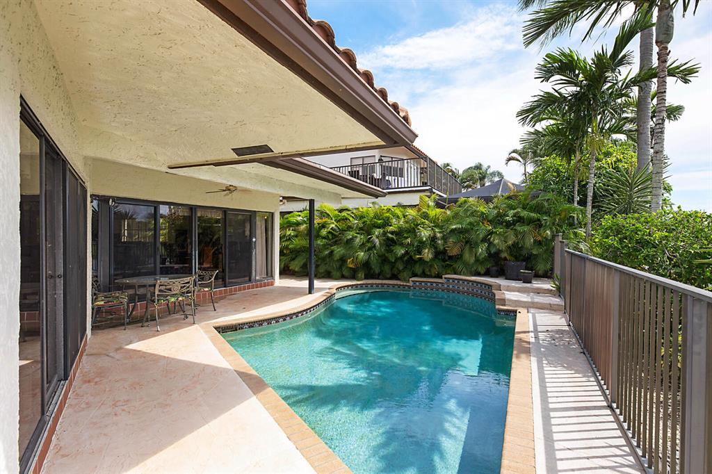 This remarkable 3 bedroom + convertible den, 2.5 bath pool home offers stunning waterfront and golf course views from the private, fenced backyard! Located in the highly desired Boca Pointe community, this upgraded home offers open living spaces full of stylish architectural detail, neutral ceramic tile throughout, and a large, open kitchen with breakfast bar, granite counters, recipe desk, cook island, sub-zero fridge, wall oven and endless storage and counter space. The spacious master bedroom overlooks the lake and golf course and features a large en-suite bathroom with separate shower and tub. The fenced, private and covered patio is an entertainers paradise as it overlooks the pool, lake and green golf course.