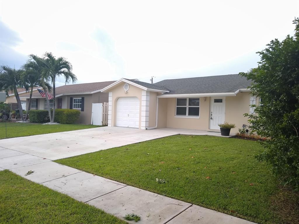 Great location, Great home, No HOA, Boca Raton! Lovely 3 bedrooms 2 bath w/partial 1 car garage, Saltillo tile and wood-floor create that perfect floor combination. This home settles in the Boca Vista Neighborhood a quiet secluded enclave that offers peace, serenity and A rated schools. Close to major roads for easy commute, beach access is approximately 2 miles. This home features many upgrades, well maintained roof, A/C, kitchen. The paint is still wet from the fresh interior/exterior paint, appliances, both bathrooms were updated. Privately fenced with wood and chain-link fence makes it perfect for pets and children. Store all of your lawn equipment plus more in the 10x10 shed with electric power/light perfect for when you have to find something at night. All of the windows were upgra