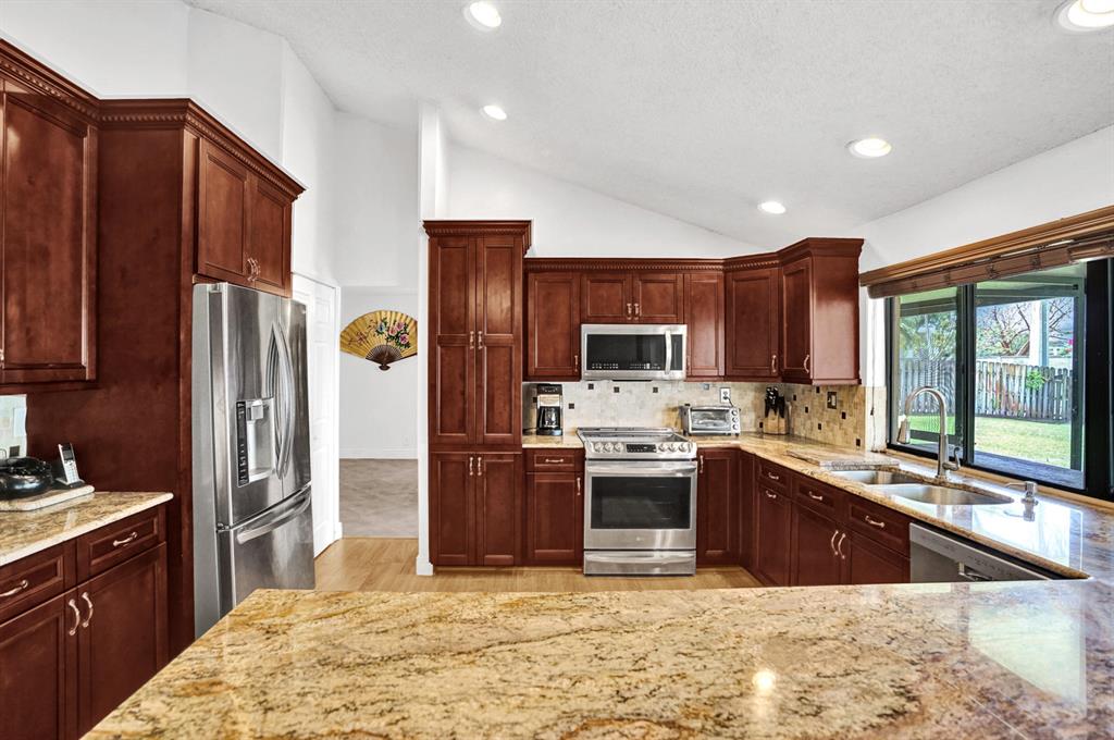 Impeccable renovated 3BR 2BA home, conveniently located in highly sought after Rock Creek in Cooper City. The home has a spacious open floor plan with soaring ceilings, French doors, modern porcelain wood tile floors and a 5 YEAR OLD ROOF. The chef's gourmet kitchen has recently been renovated with high end stainless steel appliances, endless granite counter tops plus ample storage that opens to the large family room. The large backyard is oversized and spacious enough to add a pool, expand the home or enlarge the screened in patio. There is a transfer box for the generator, an irrigation system with well water, and the home has been professionally and lushly landscaped. It has A+ schools, walking paths throughout the neighborhoods that lead to family friendly parks, lakes, Tot lots,