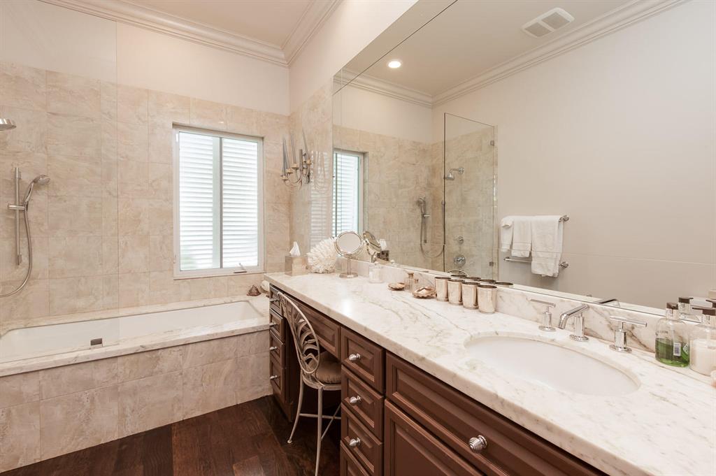 This Charming Bahama Lane residence offers 4,360 total square feet of living space with five bedrooms, and five and half baths. Each bedroom offers an en-suite bath and closet. Situated on a large 144' x 91' lot, the property features a wonderful pool area with green space, a large covered outdoor loggia, a living room with high ceilings and a bay window, a dining room with French doors that open to the outdoor loggia, and a spacious kitchen that also has doors to the loggia for easy entertaining. The property is ideally located in close proximity to the beach and the Lake Trail.