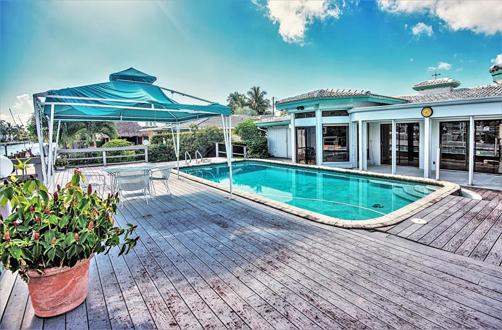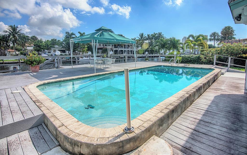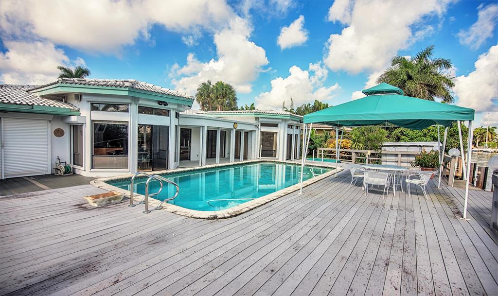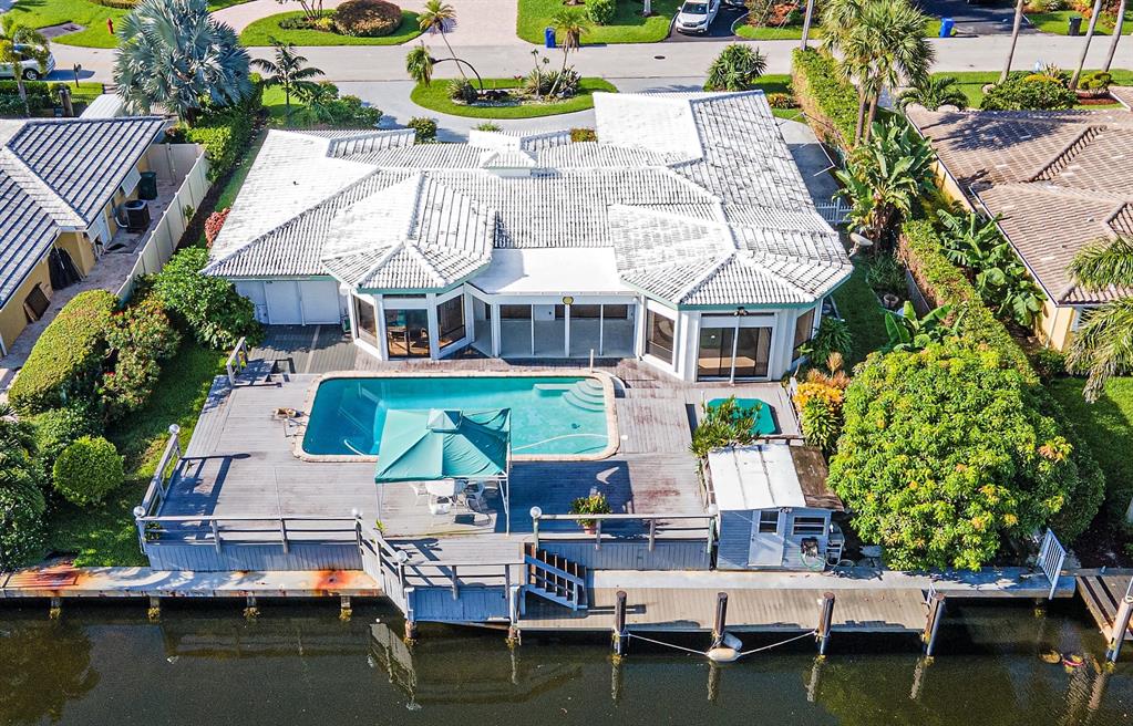 This tremendous waterfront property is perfectly located just 2 lots from the intracoastal point, with direct ocean access and no fixed bridges! Extraordinary 95' frontage on an oversized 120' deep lot, with a well maintained dock and seawall. The spacious home has 10' ceilings and an open floorplan, split plan with 4 bedrooms and 3 full baths and a waterfront pool and spa. Completely protected with roll-down hurricane shutters and hurricane rated roof. Recent updates. Priced at lot value
