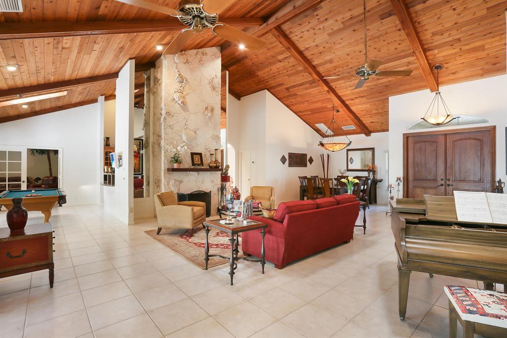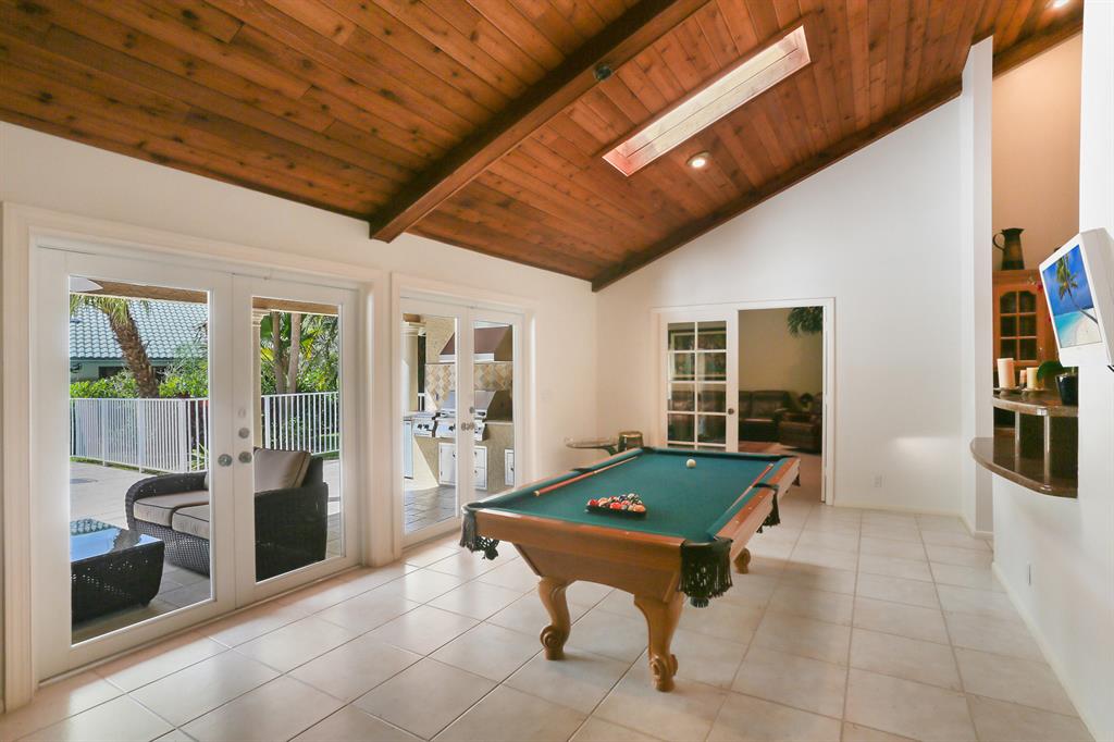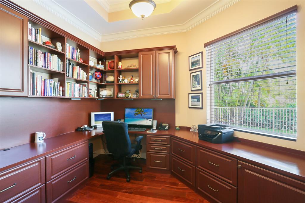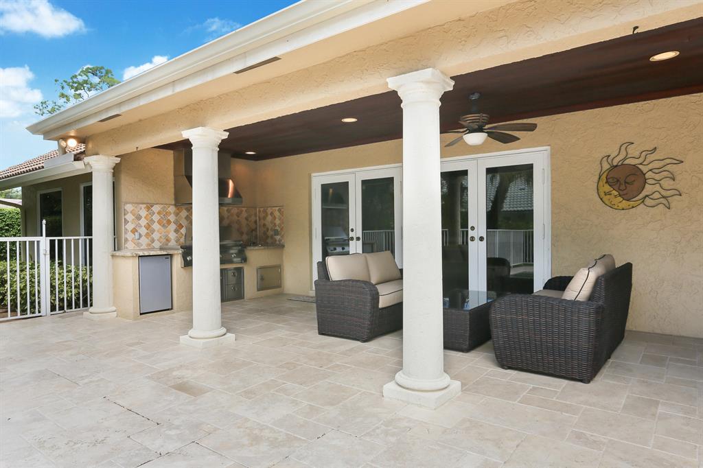 GREAT HOME!! Beautifully appointed & freshly painted cul de sac home. Situated on a oversized lot, lushly landscaped for total privacy, this 5 bedroom, plus office and a gym/ OR 2nd office, 3 full and 2 half bath home, has vaulted ceilings with wood beams, hurricane impact glass windows, newer roof and spectacular entertaining space. The expansive addition to include a master bedroom suite with a study was completed in 2007 along with numerous exceptional renovations: an outdoor oasis; sunny pool & deck, summer kitchen, covered patio and garden area. Stroll to the Estancia Park. Low HOA fee, 24 hour guard-gated community w/ tennis, walking trails & playground. Best ''A'' rated schools. Close to major thoroughfares, shopping, restaurants and houses of worship.