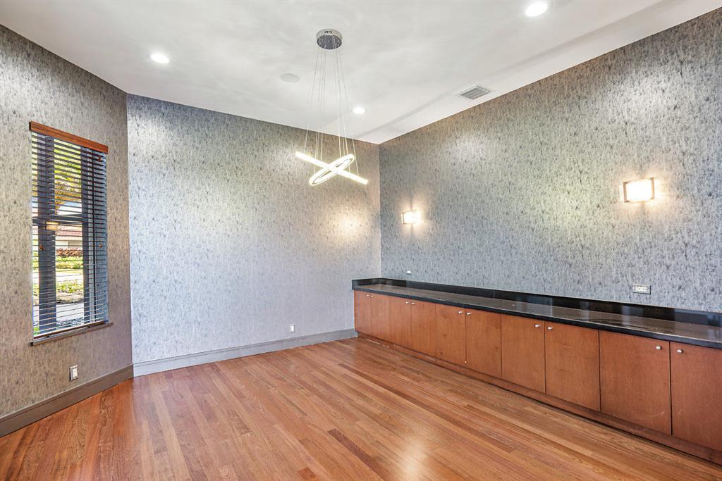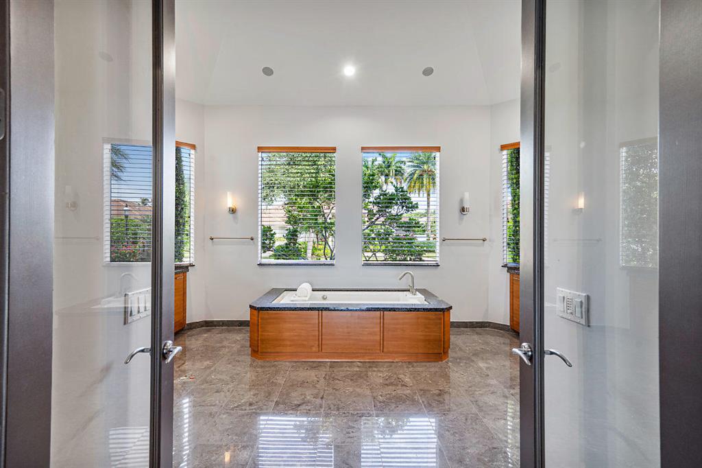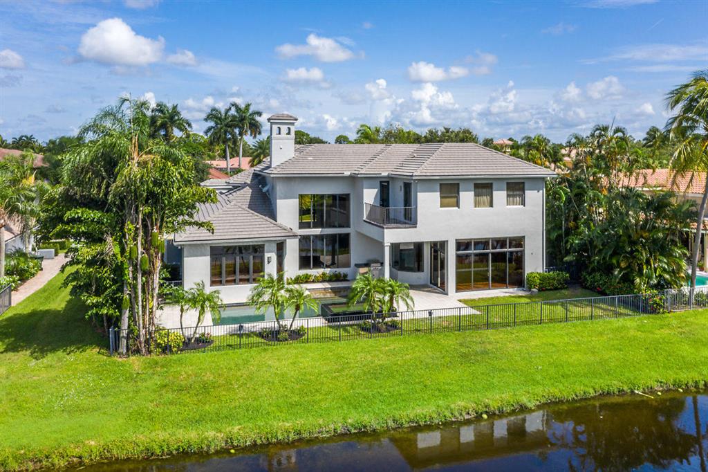 Sited in the prestigious Hamptons of Woodfield Country Club, this custom-built, lakefront home offers 7 bedrooms and 7.1 baths. The Zen inspired entryway includes a walk over bridge complemented by a koi pond and soaring wood beams. Upon entering the home you are greeted by sprawling lake views and the sparkling infinity pool. The living space boasts luminous natural light and streamlined details including a floor to ceiling stone fireplace. Kitchen includes stainless steel appliances, gas-range, double wall oven, cabinetry with glass inserts, and a spacious island, equipped with wine fridge and inset sink. The first floor Master Bedroom features his and her separate baths and gracious walk in custom closets. Additional rooms on the first floor include the massive office with built-ins