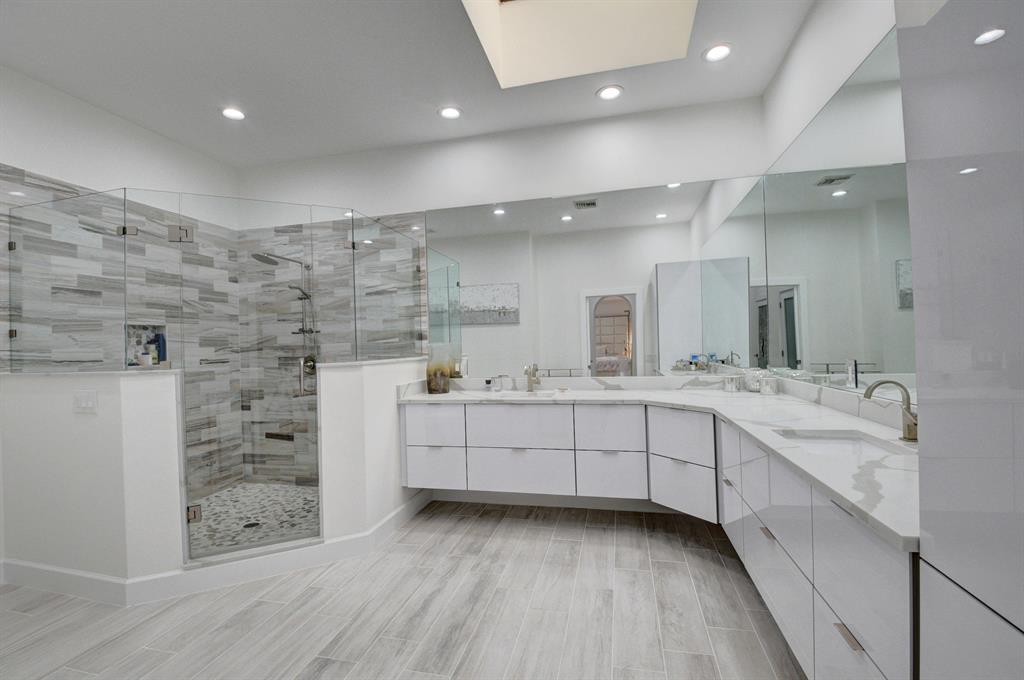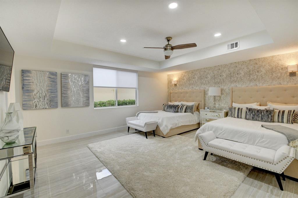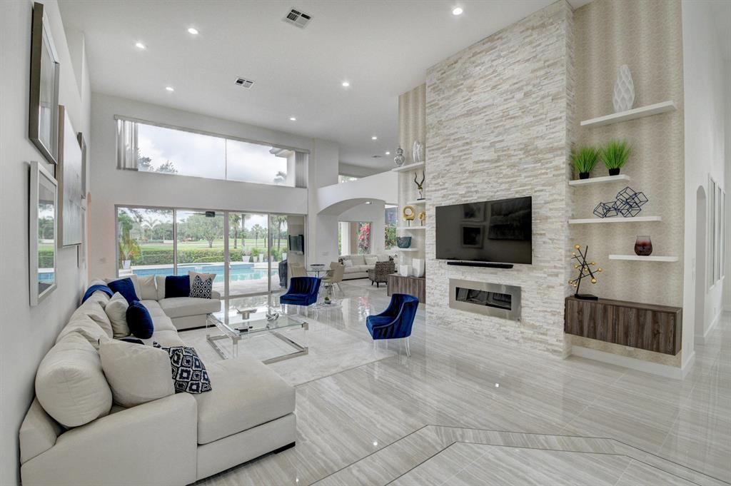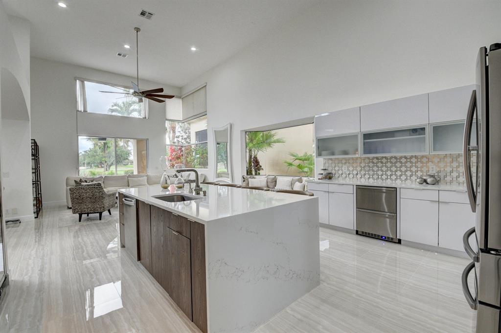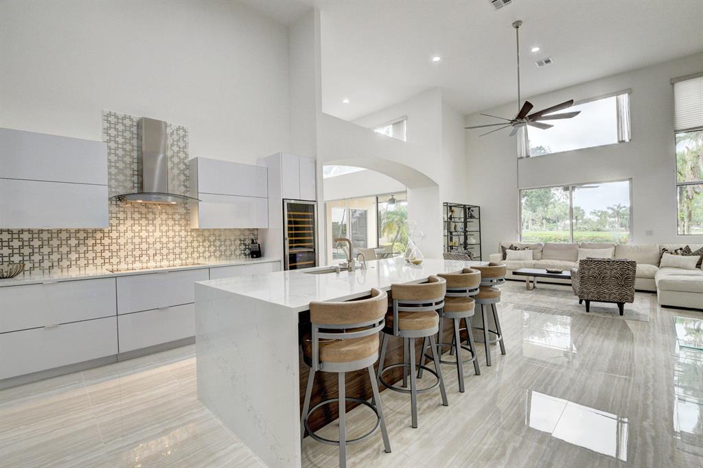 This elegantly modern 4 bedroom 4.5 bath + office home has been completely remodeled. Features include a magnificent 2nd hole golf course view, lots of natural light, custom accent wall, volume ceiling, porcelain title floors, beautiful white cabinetry with quartz countertops, double ovens with stainless steel appliances. Master bedroom, second bedroom plus office down with 2 bedrooms up, all with en suite bathrooms .An additional added bonus is the lovely private balcony perfect for guests. Start living your Florida Country Club lifestyle today!