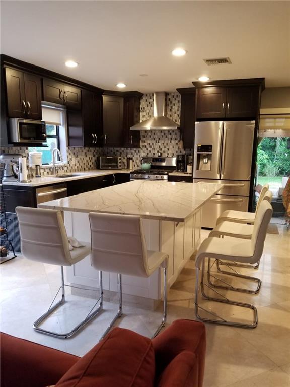 Spacious newly remodeled contemporary with 4 bedroom/ 3 full baths. Features a large private backyard overlooking a beautiful Cypress Preserve w room for a Pool. Marble flooring throughout including gorgeous marble staircase. The bedrooms feature wood flooring. Spectacular remodeled kitchen w over sized center island w premium QUARZTITE counter top. Stainless-steel Appliances with a Wine Refrigerator built in the kitchen island. . Large Master Suite, walk-in closet, master bath w shower & Jacuzzi tub. New paint inside & out. LOFT Office w custom built in Cabinets & Marble floors great for a home office. Laundry room w custom cabinets GRANITE Counter-top, washer & dryer. Pet Friendly HOA fee $85 a month includes community heated pool, tennis courts, & maintenance for the common areas.