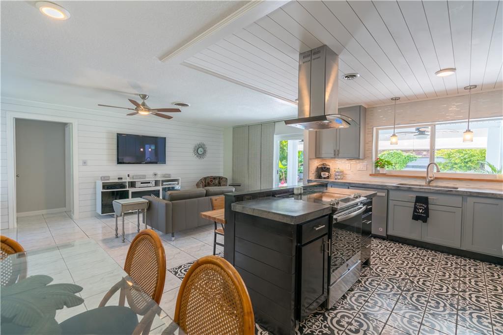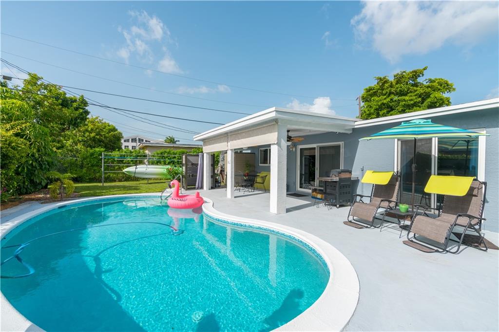 Wow! Stunning & completely remodeled 3 bed 2 bath home with tropical pool. Spacious corner fenced lot, 2 blocks to the new City Park/Village Art Plaza. New kitchen w/concrete counters, custom island w/snack bar & vented cooking hood, stainless steel appliances including a French door refrigerator, custom shaker style cabinetry & multi-layered pantry (so cool you just need to see it to believe it)! Open concept, warm & inviting - totally move in ready home w/a split bedroom plan. New master bath w/custom closet organizers & custom barn door. IMPACT windows & doors & House freshly painted. Relax around your pool complete w/bubbling fountain, new Diamond Brite pool finish & custom outdoor shower & kayak rack. Starfruit & Banana trees. No HOA. East Sunrise Civic Assoc active in community.