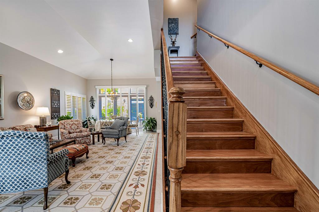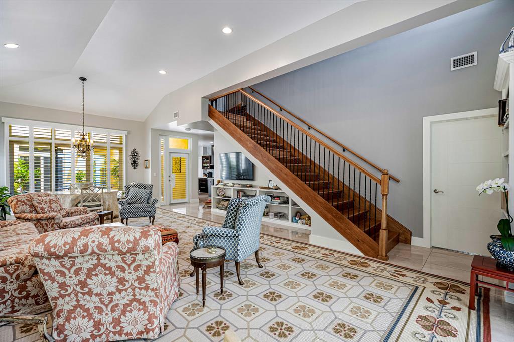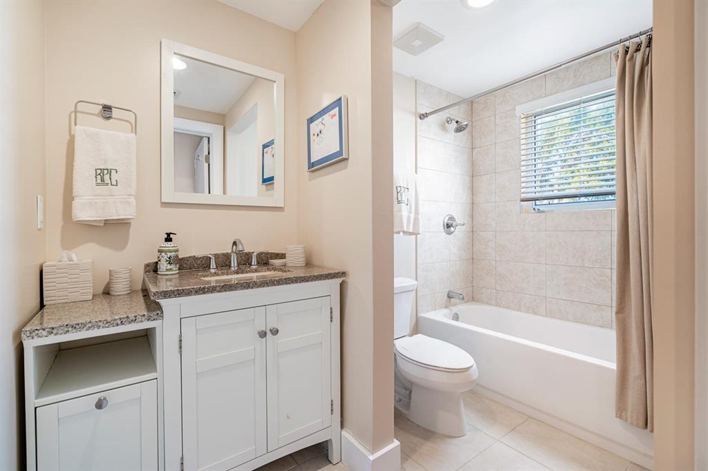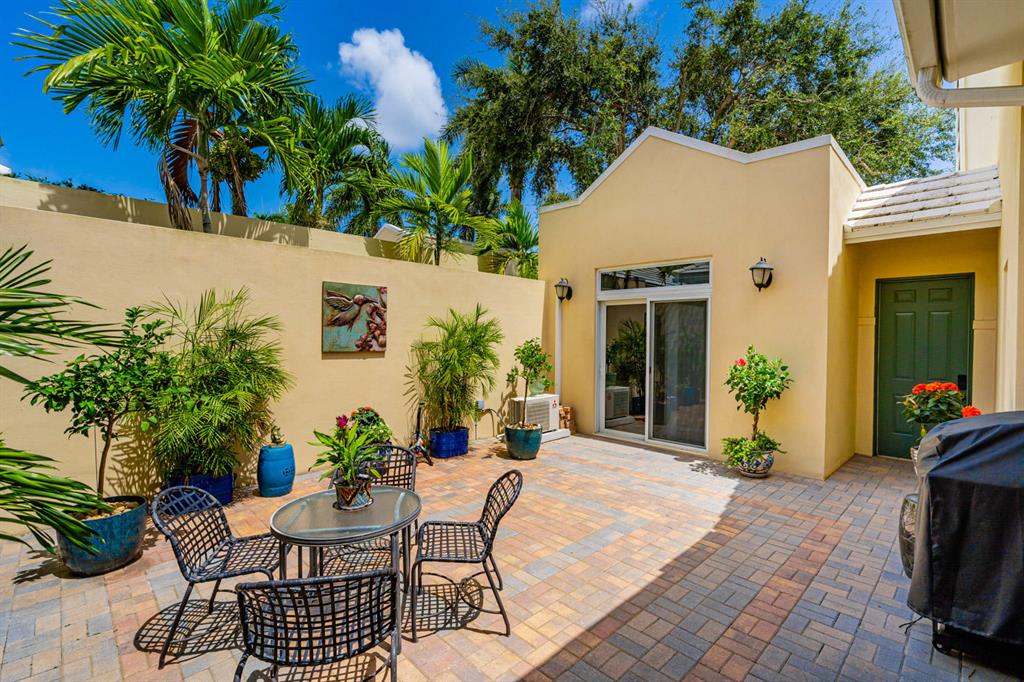 Spacious, light-filled four bedroom beauty! This desirable villa was built only four years ago and boasts complete hurricane rated impact glass for all window and doors, three bedrooms and three full baths in the main home and one bedroom and full bath with walk-in closet in the versatile guest home! There's a two car garage and a lovely brick pavered patio courtyard for outdoor entertaining/relaxing! Walk in and notice the numerous upgrades; built-in bookshelves, top of the line Plantation Shutters, custom master bath vanity & guest home bath vanity. This move-in ready two floor (master bedroom is on main level) home has more than 2,500 sq. ft under air! The guest home even has its own AC unit. The main home has pretty 22'' porcelain tile downstairs and beautiful wood flooring for