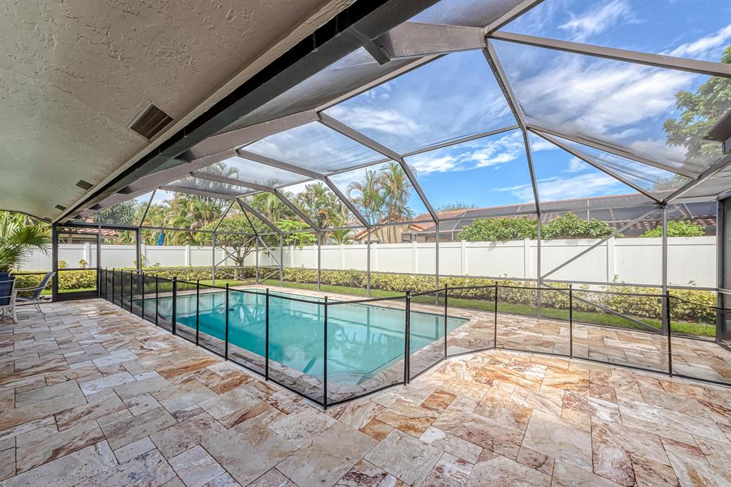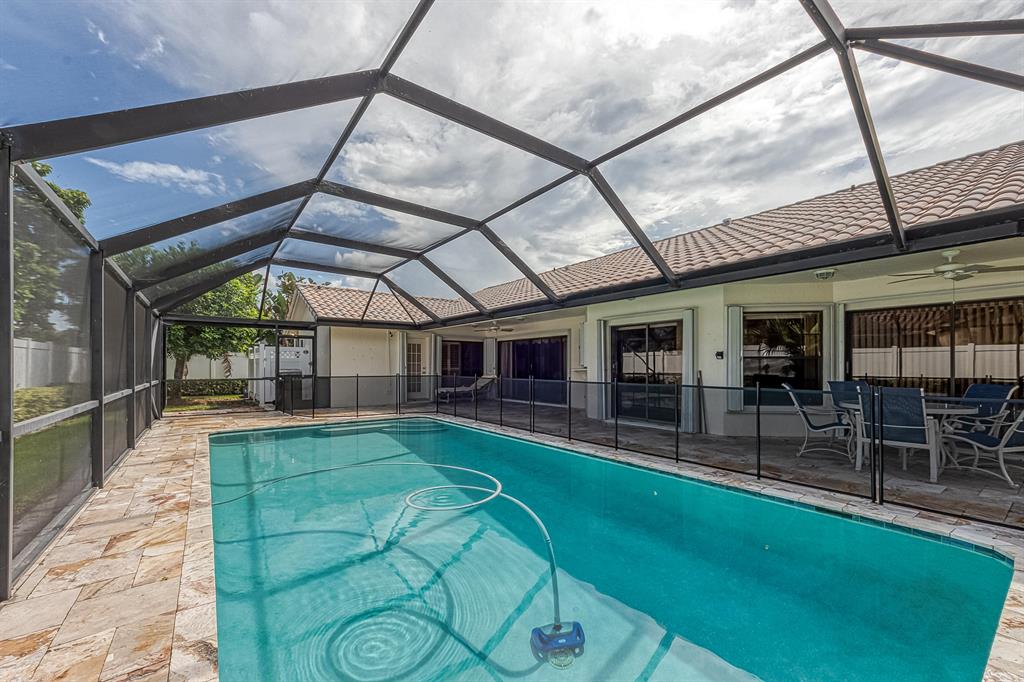 4 bedrooms, 2 1/2 bath, pool home in the desirable Estates of Boca Lyons, ''Bocas hidden secret''. Oversized 2 car garage.Spacious floor plan incl. a wood burning fireplace. Many updates incl kitchen w/ SS appliances, all bathrms, ceramic tile throughout. Lg laundry rm under A/C w/ tub & 2nd refrig. Inviting screened pool w/ travertine deck & patio..Pool is heated & a new child pool gate installed last yr. 2 A/C units, both 6 yrs. w/ Halo system. Yard is completely fenced w/ newer white poly fencing. Outside storage shed. Accordian shutters on all openings & hurricane rated garage door.Front of home has been restoned & beautifully landscaped. Sprinklers on well/pump & timer. Roof replaced in 2003. HOA is $100 a qtr. No appl/interview..Kid & pet friendly neighborhood w/ great Boca schools