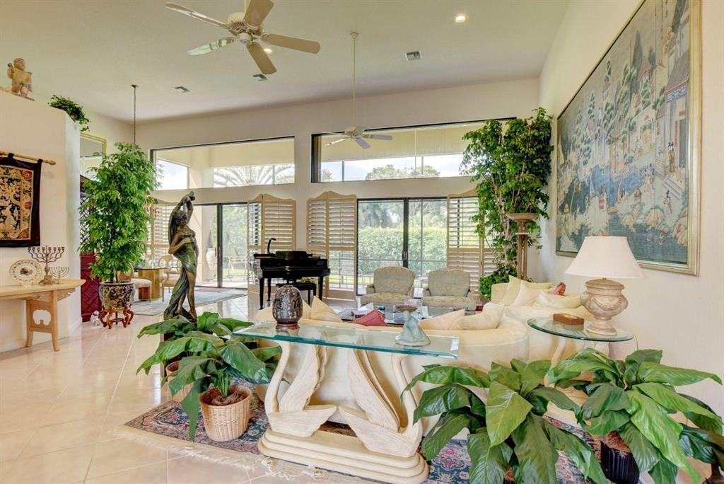 This extraordinary courtyard home is located on a double lot and is one of the largest courtyard homes you will ever see. This one story home located in the award winning Country Club at Broken Sound features volume ceilings, open floor plan, neutral colors throughout, shutters, & partial impact windows. All bedrooms face out to the resort style courtyard featuring an oversized pool, under cover lanai with a built in barbecue and a guest house with 2 bedrooms, 2 full baths attached with a den area and kitchenette. The roof is 7 years old, with three newer A/C's. Enjoy the large screened in patio that overlooks the back yard, with lots of grass for dogs and children. What a fabulous corner lot in which to make this home your own!