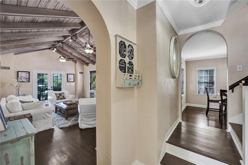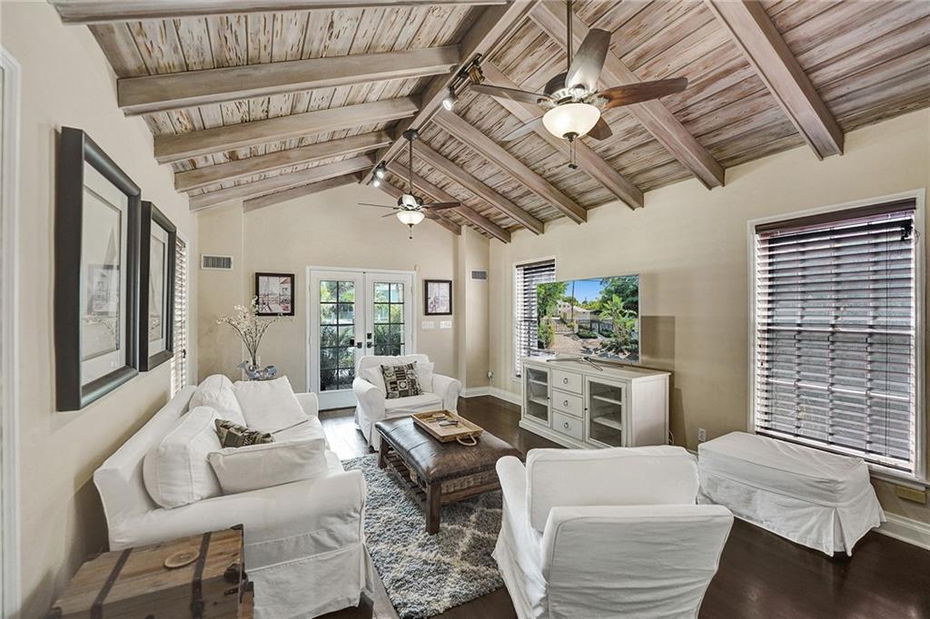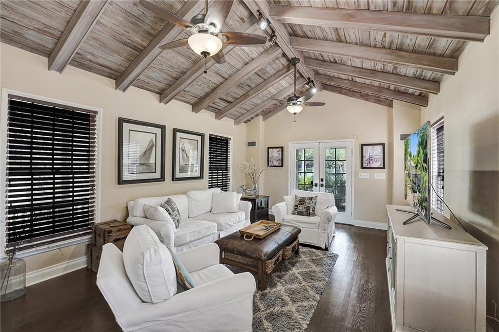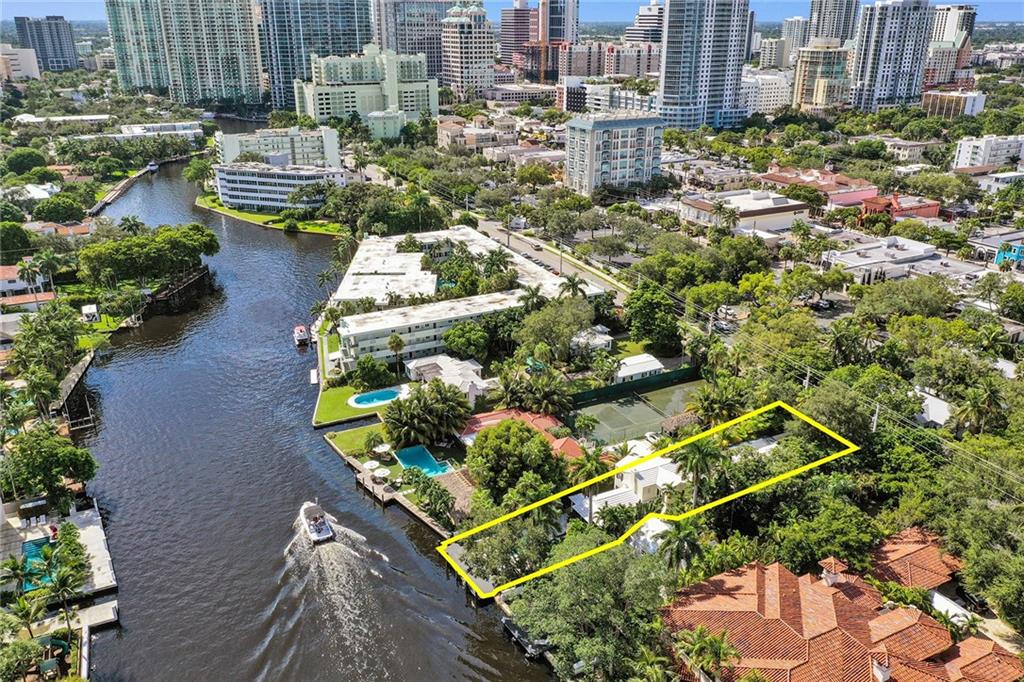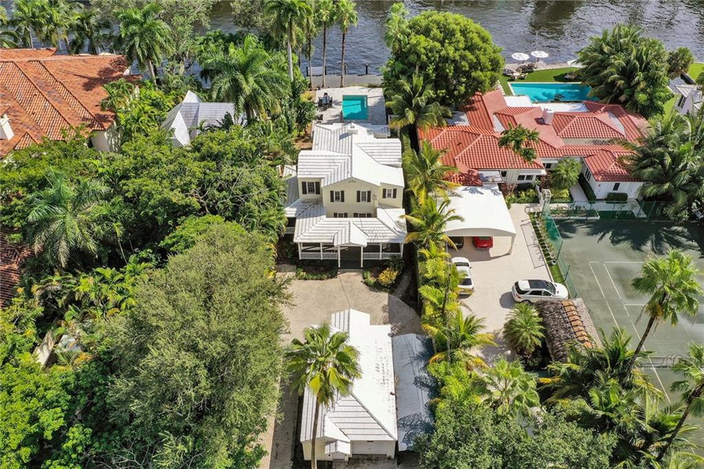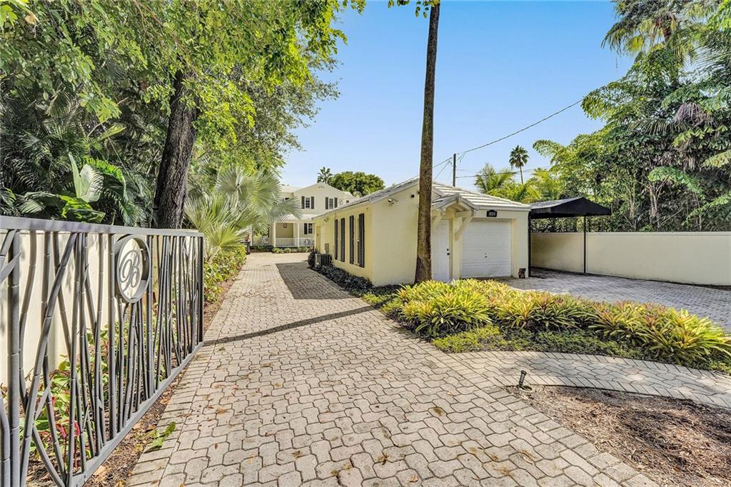 Location, Location. Waterfront home nestled in between the New River and Las Olas Blvd. This tropical and gated home combines Old Florida charm with a Key West ambiance. Included is a separate guest cottage, perfect for visitors or potential income. Main house features 3 bed, 2.5 bath, gorgeous espresso wood floors and jaw dropping cathedral ceilings. Dual master suites, one on the ground floor and one upstairs. The house is complete with a classical wrap around porch and garage. Enjoy 50' of prime water frontage with a resort like backyard featuring an updated pool, travertine patio and dock. This highly desirable property is also well suited for new construction. 11,000 Sq ft. Don't miss this opportunity one of only 7 properties located directly on the New River.