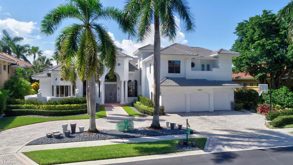 Stunning sunsets over a sparkling wide lake vista enhance this spacious estate offering 6 bedrooms and 2 elegant home office spaces. Work from home,distance learn or play all day in this welcoming family home. Over 5000 square feet of modern comfort,including 5 full & 2 half baths,2 oversized jacuzzis,soaring ceilings, marble floors,neutral paint & window treatments throughout. Huge closets,new state-of-the art security system, & a gourmet kitchen loaded with display cabinets, stainless appliances, breakfast in the round & great family media room expanding the granite clad kitchen. Unique architectural details include triple Art Deco ceiling soffits,double doorways,outstanding built-ins of exotic woods & stately columns. First floor owner's suite,art niches,2 additional en-suite bedrooms,